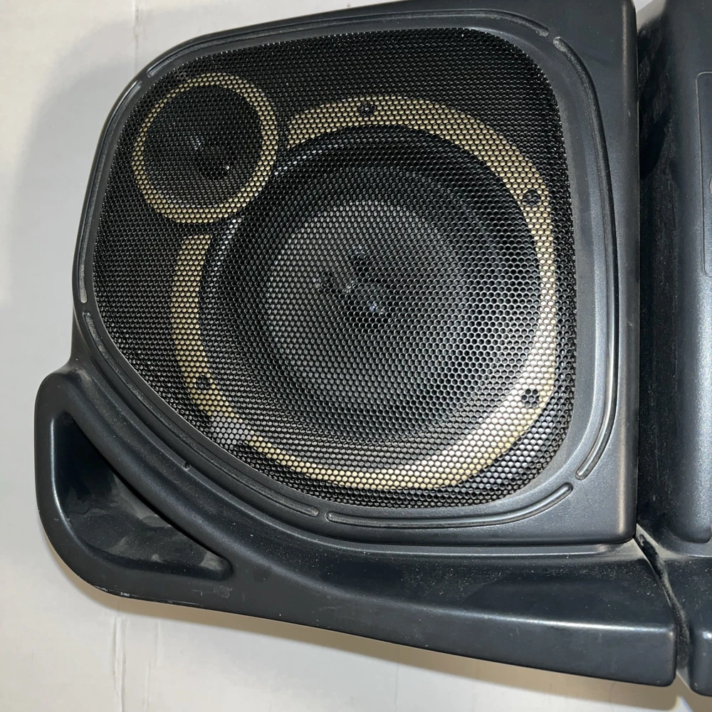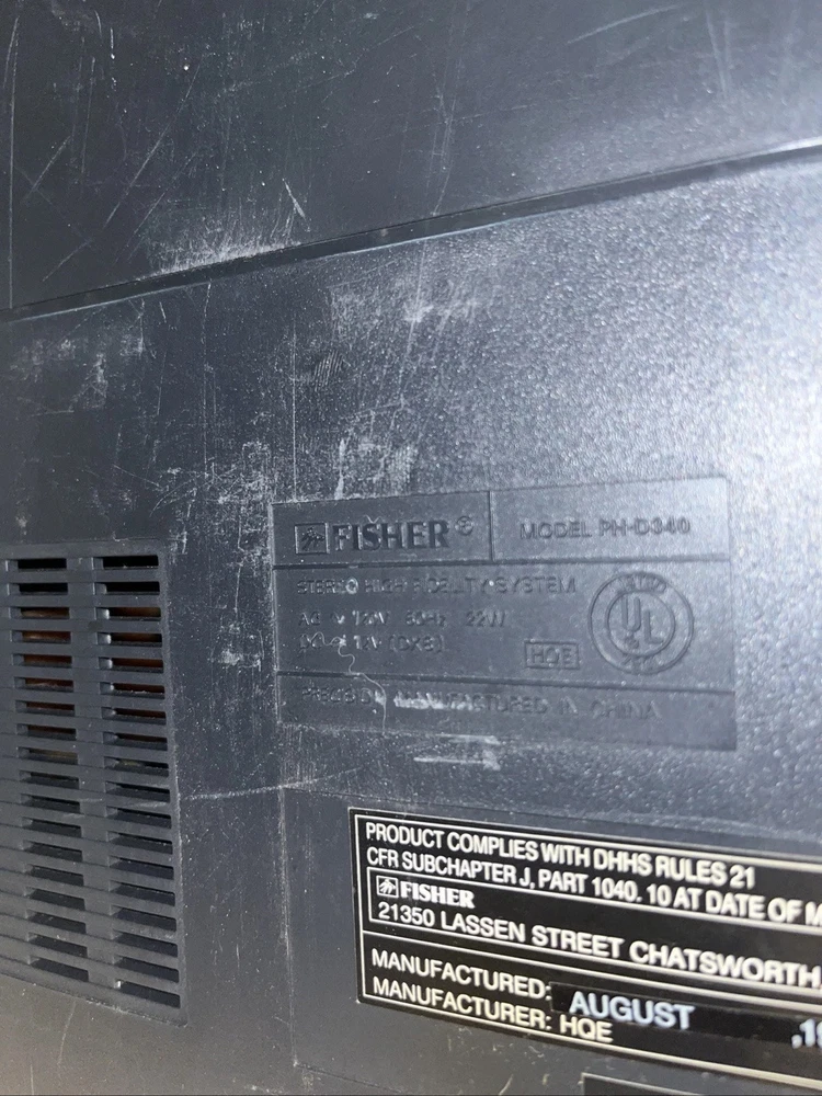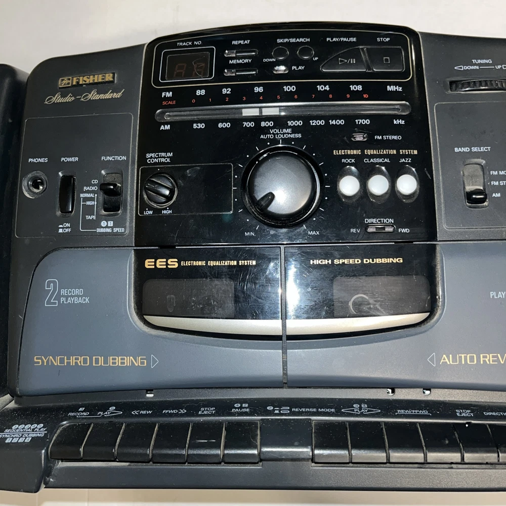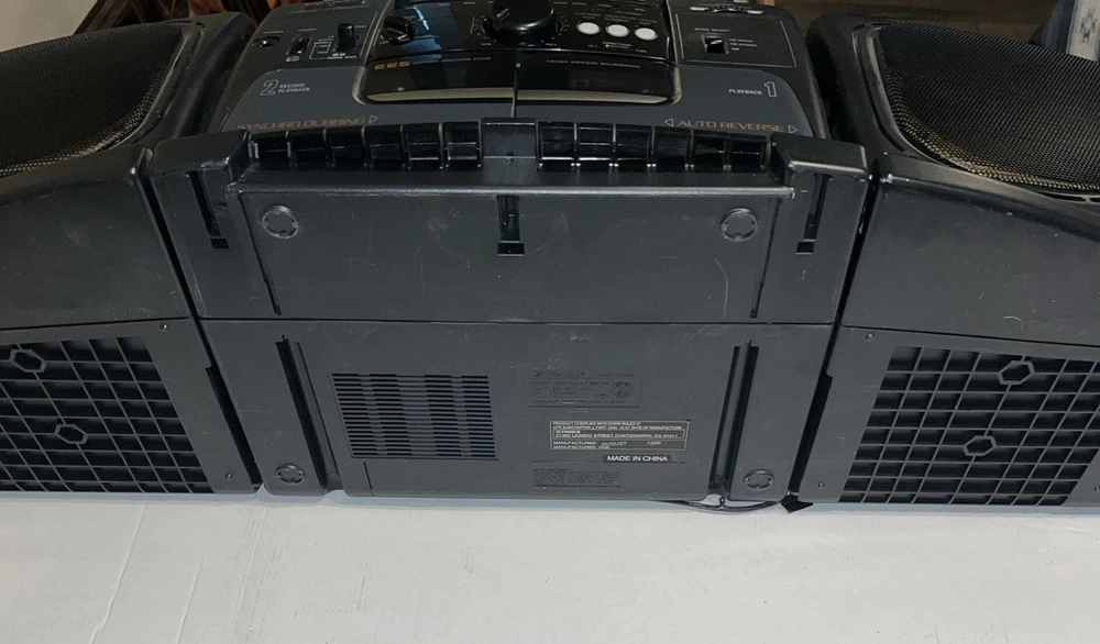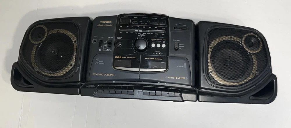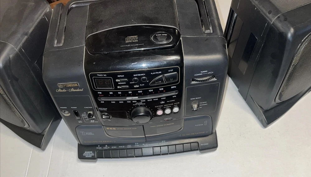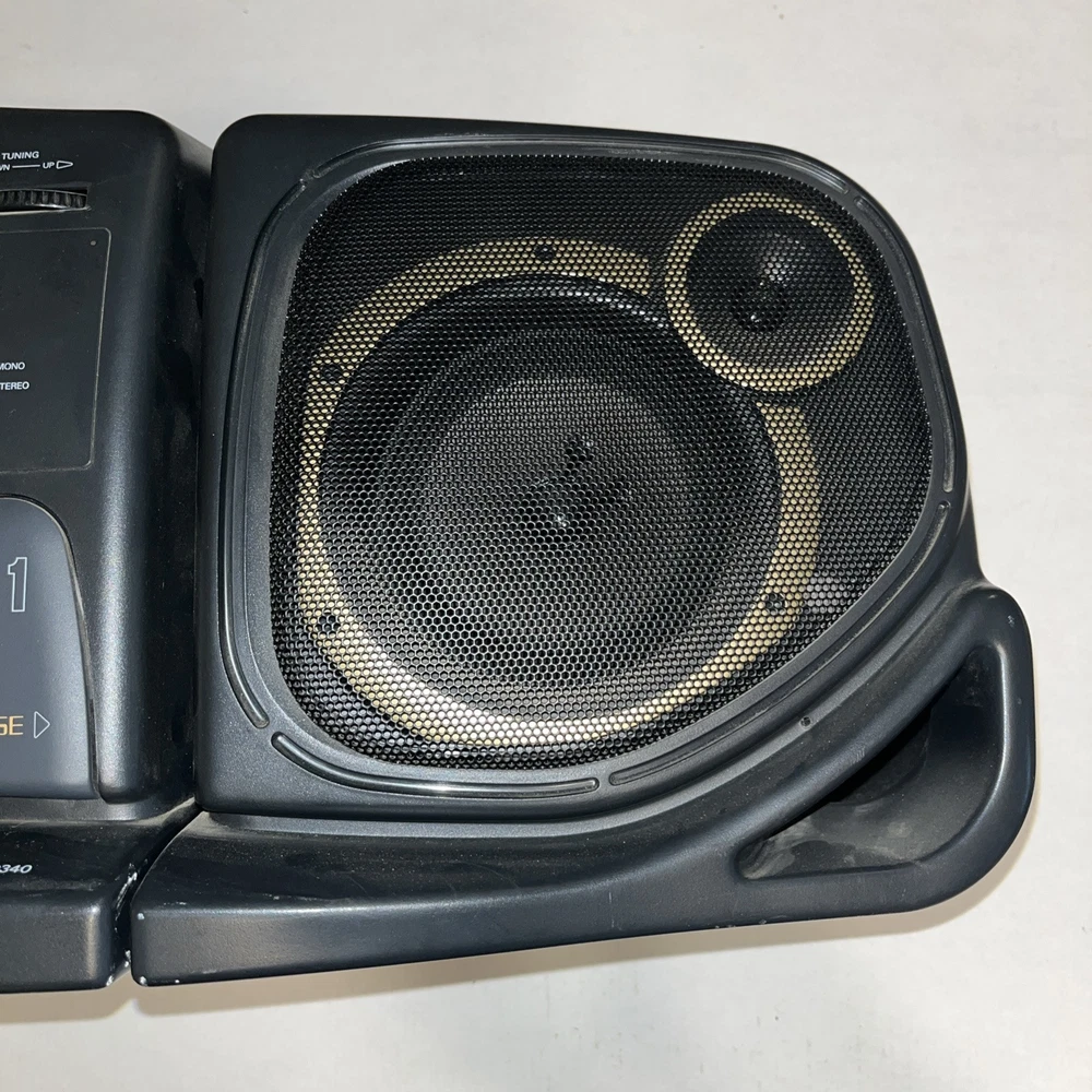 Radio Works speakers work probably needs some new speaker wire. I put a CD in there. It did not play the CD, but it spins. I have not tested out the tape decks yet, but AM/FM radio works sound works comes with power cord battery cover a good project for somebody who knows how to fix it. Please see pictures for all details.