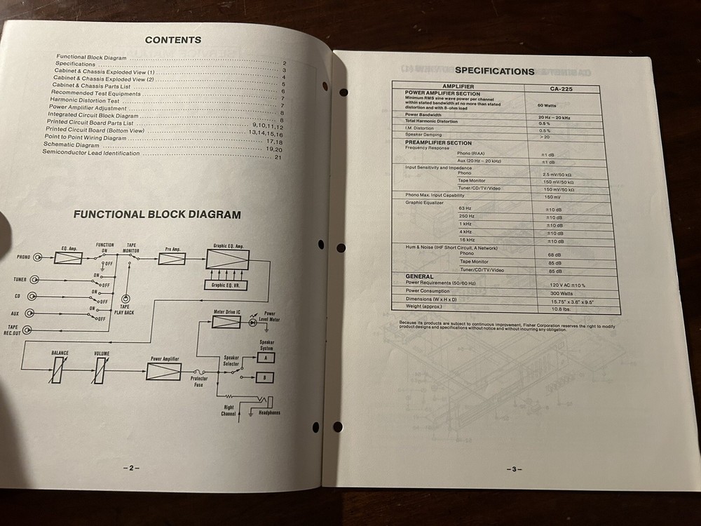Fisher CA-225 Stereo Amp Service Manual with Vintage OEM Diagrams
