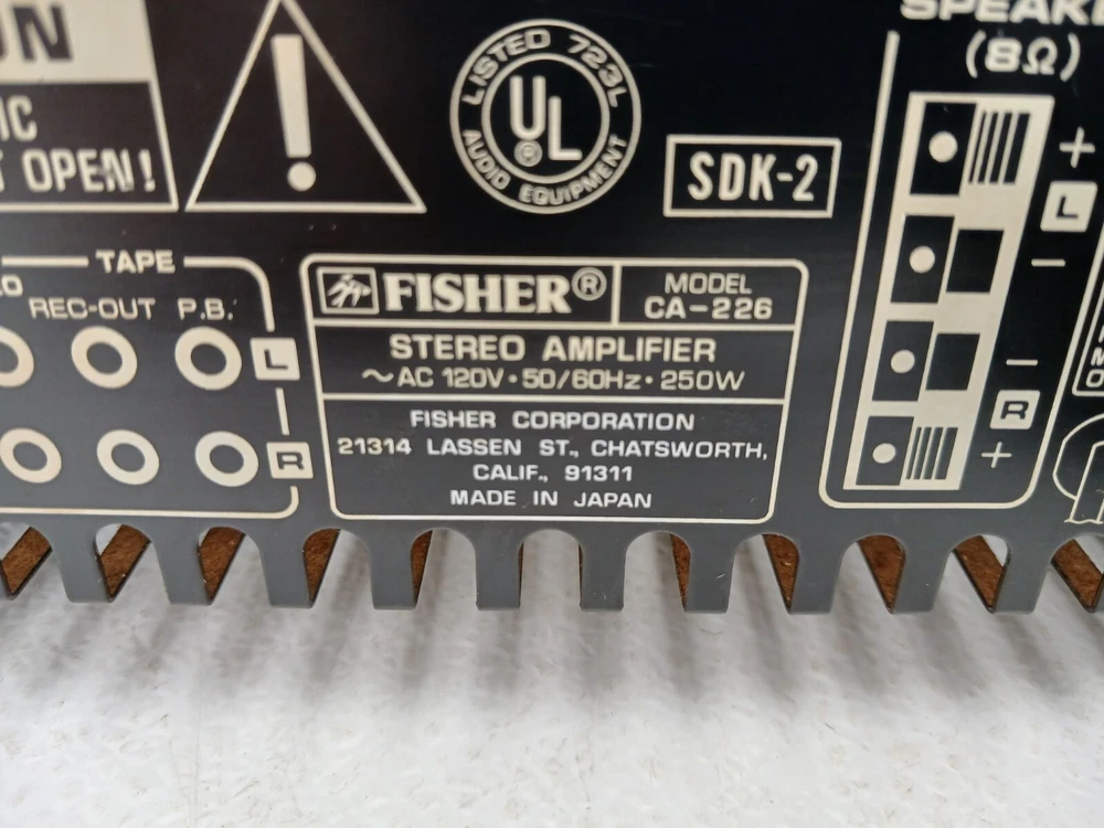 Fisher CA-226 Integrated Stereo Amplifier 50Watts Per Channel Black All items have been tested and are in working condition unless noted. Most items are in great shape but some do have wear. Please see all photos for condition. If you have any question, message me. SHIPPING TO THE LOWER 48 STATES ONLY NO P.O. BOX SHIPPING