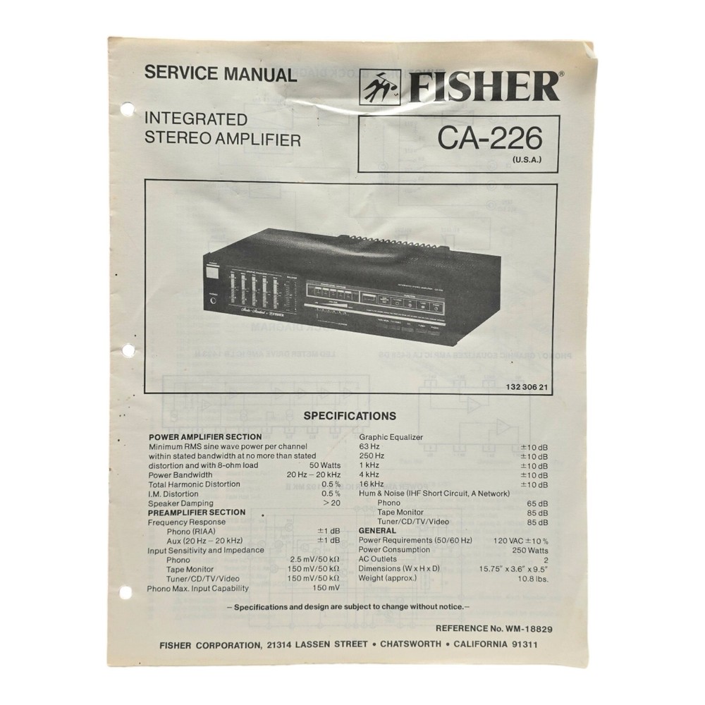 This is a service manual for the Fisher ca-226 integrated stereo amplifier. This manual also has the schematics. Please message me if you have any questions, and I thank you so very much for looking at my Fisher stereo amplifier service manual.