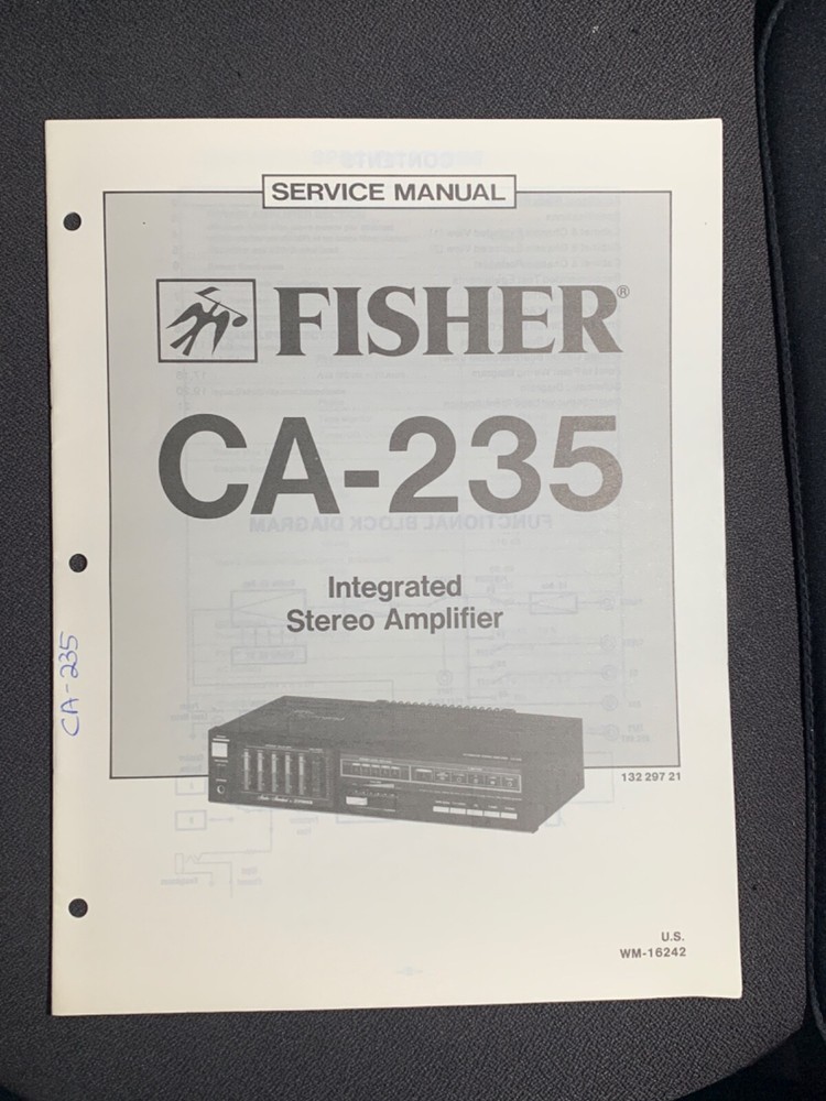 I am selling a Fisher CA-235 Service Manual Integrated Stereo Amplifier Original.. Item was used at a repair center .. Item will be shipped USPS First Class or Media Mail..