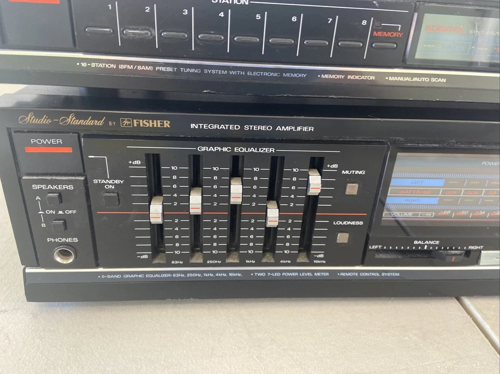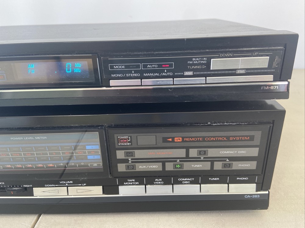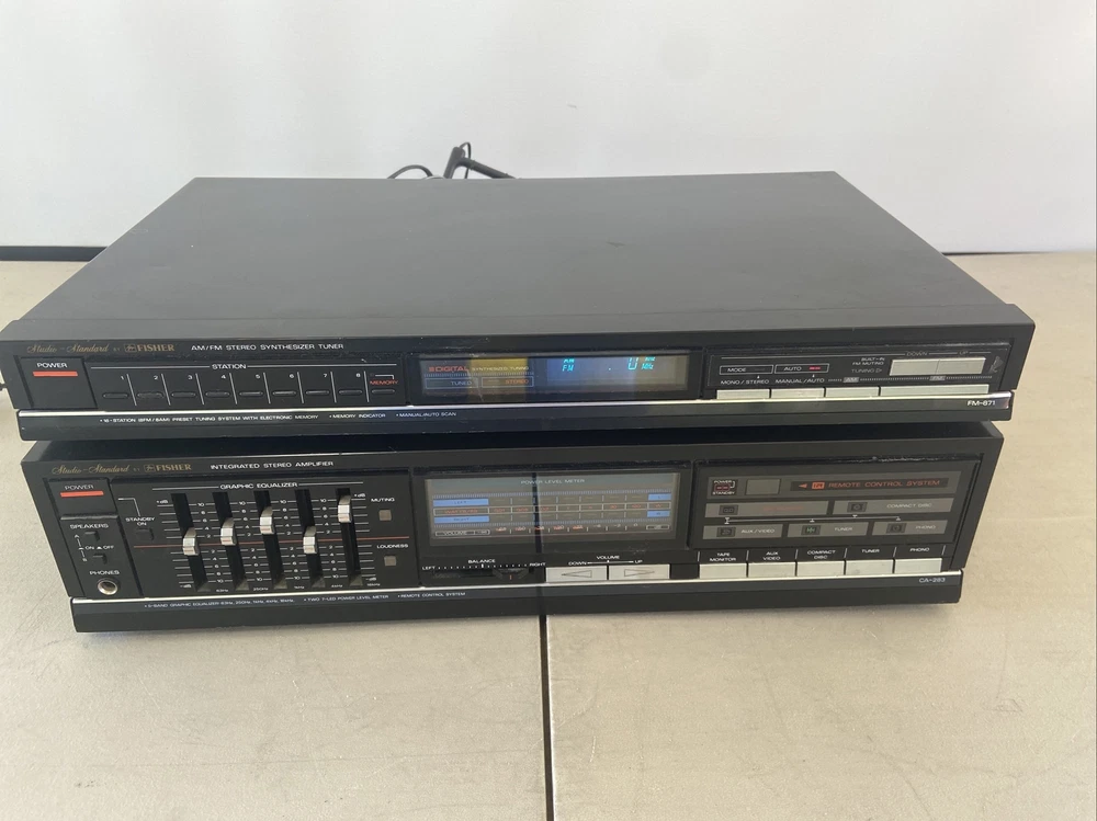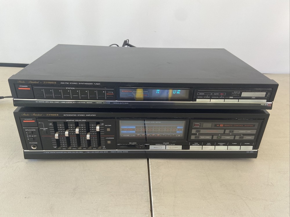 Fisher CA-283 FM-871 Integrated Stereo Amplifier Receiver Tuner Studio Standard As is only tested for power. I did notice that the FM 871 when pressing the up or down tuner did not change any but I’m not sure if there is something wrong with the item or if there is something I’m doing. Both units power on but nothing else was tested, no remote. Please view the pictures for complete condition and let me know if you have any questions. Thank you