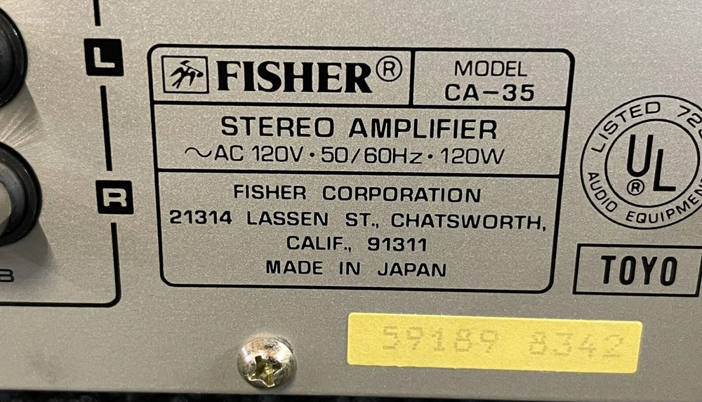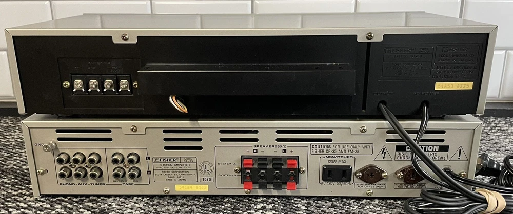 Fisher CA-35 Amp/Tuner Combo. Amp: 1984-Japan, 20 watts per channel (powerful for 20 watts!), 120 system watts, .9 THD. Phono input. Power level meter. 5 band equalizer (50 Hz slider has issues, but makes great bass at default setting!). FM-35 tuner, dial tuning. Both work well, great quality sound. Each measures 15 3/4”W x 3”H x 8”D. Listed Parts/repair due to too many abusive eBay guarantee scammers.