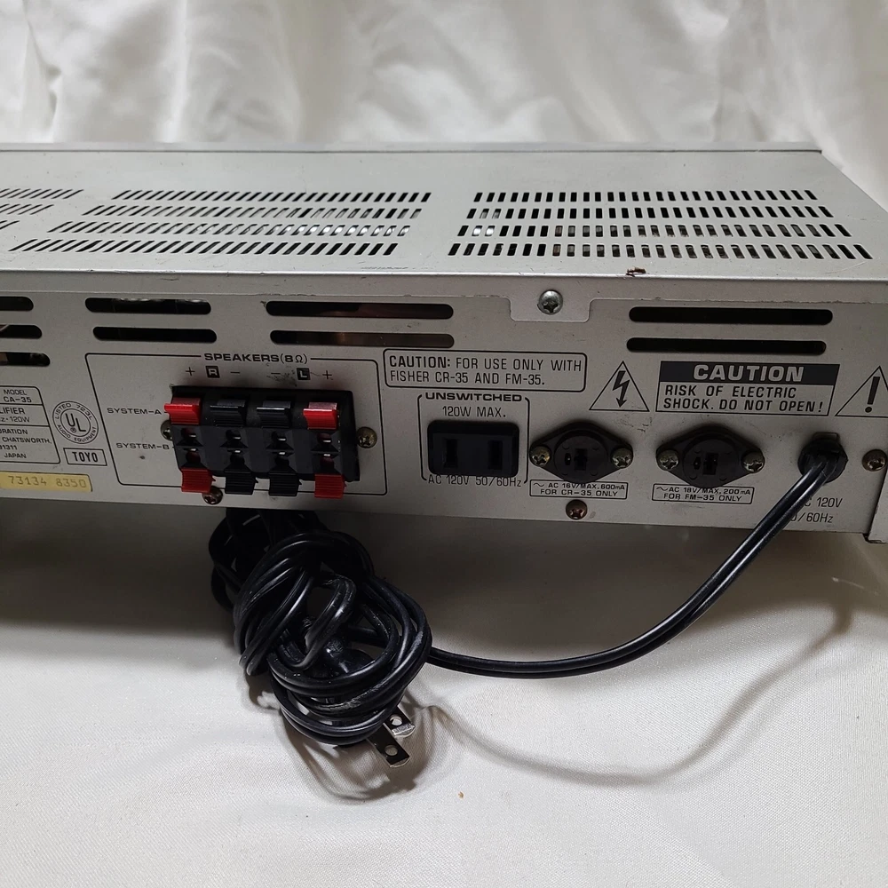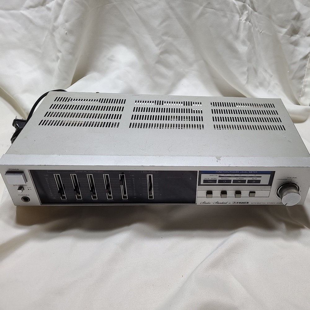 Fisher CA-35 Silver Studio Standard Integrated Stereo Amplifier. Tested. Works but has a bad channel and won't play in stereo. As is.