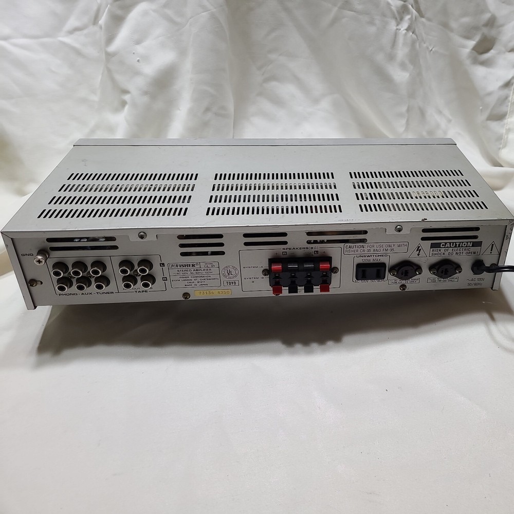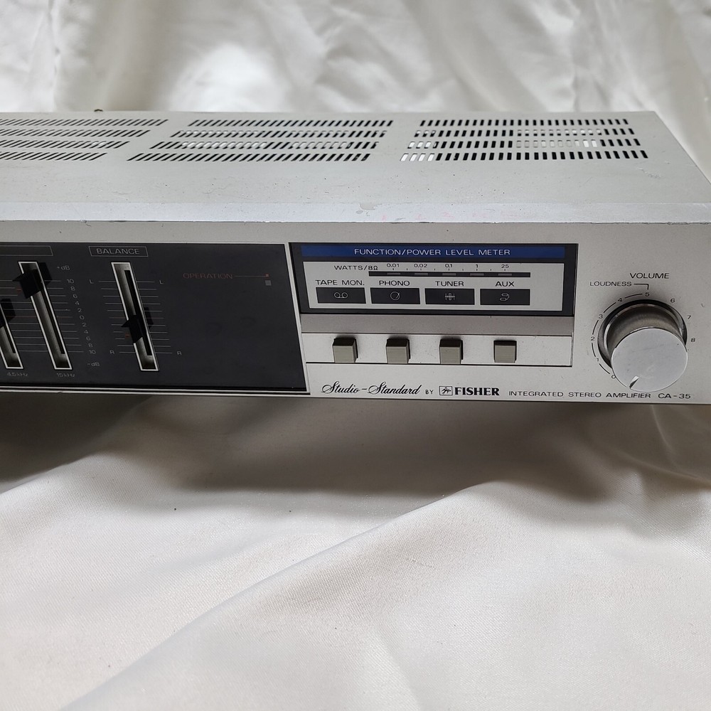 Fisher CA-35 Silver Studio Standard Integrated Stereo Amplifier. Tested. Works but has a bad channel and won't play in stereo. As is....