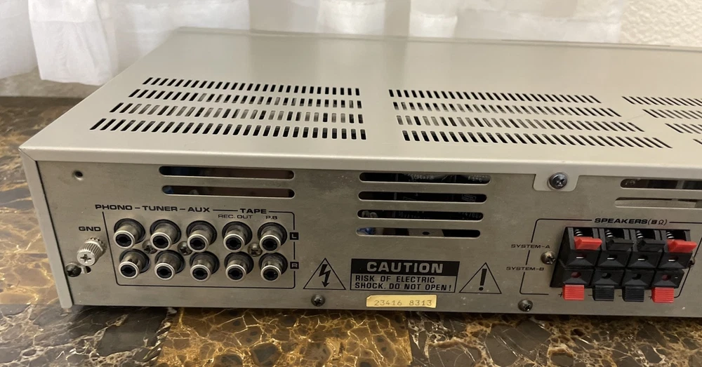 Works well and sounds great. Has a phono input for your turntable. Dimensions (WHD) 400 x 81 x 254 mm / 15.7 x 3.2 x 10 inch Notes 1984 Stereo amplifier with 2 x 30 watts power output with integrated 5 band equalizer (+/- 10dB).