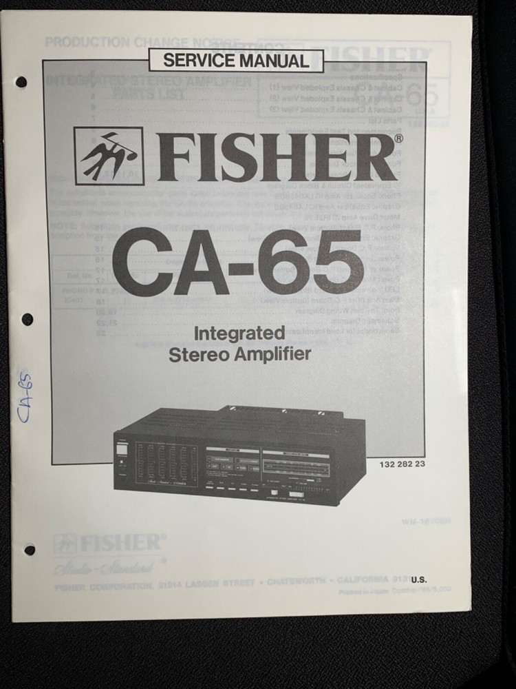 I am selling a Fisher CA-65 Service Manual Integrated Stereo Amplifier Original.. Item was used at a repair center .. Item will be shipped USPS First Class or Media Mail..