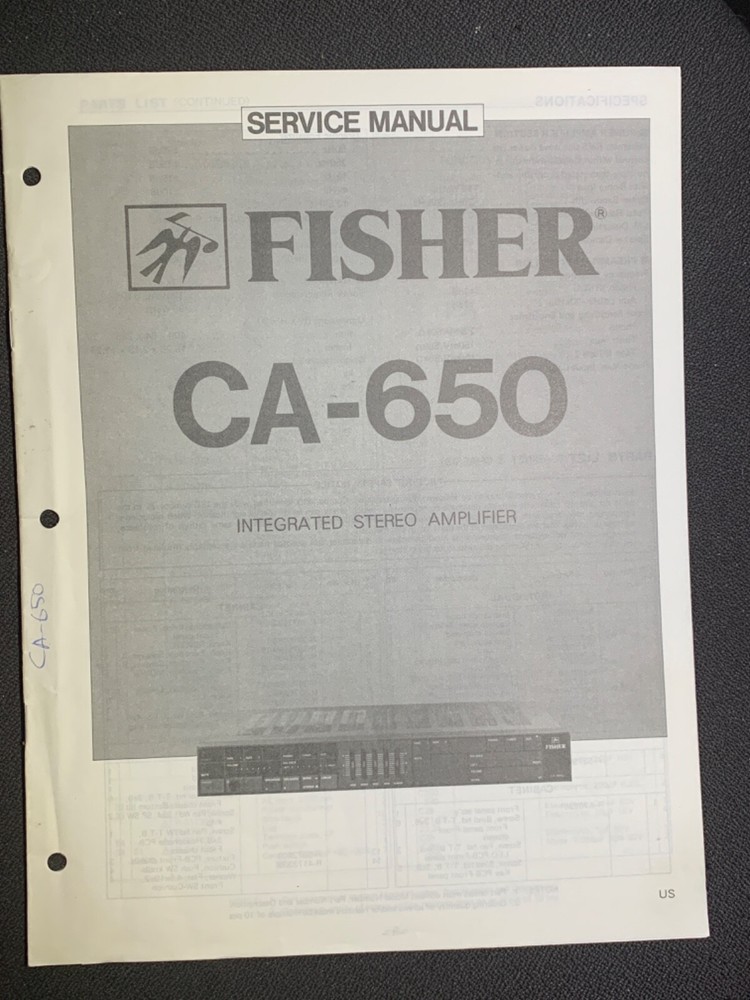 I am selling an Original Fisher CA-650 Amplifier Service Manual.. Item was used at a repair center .. Item will be shipped USPS First Class or Media Mail.....
