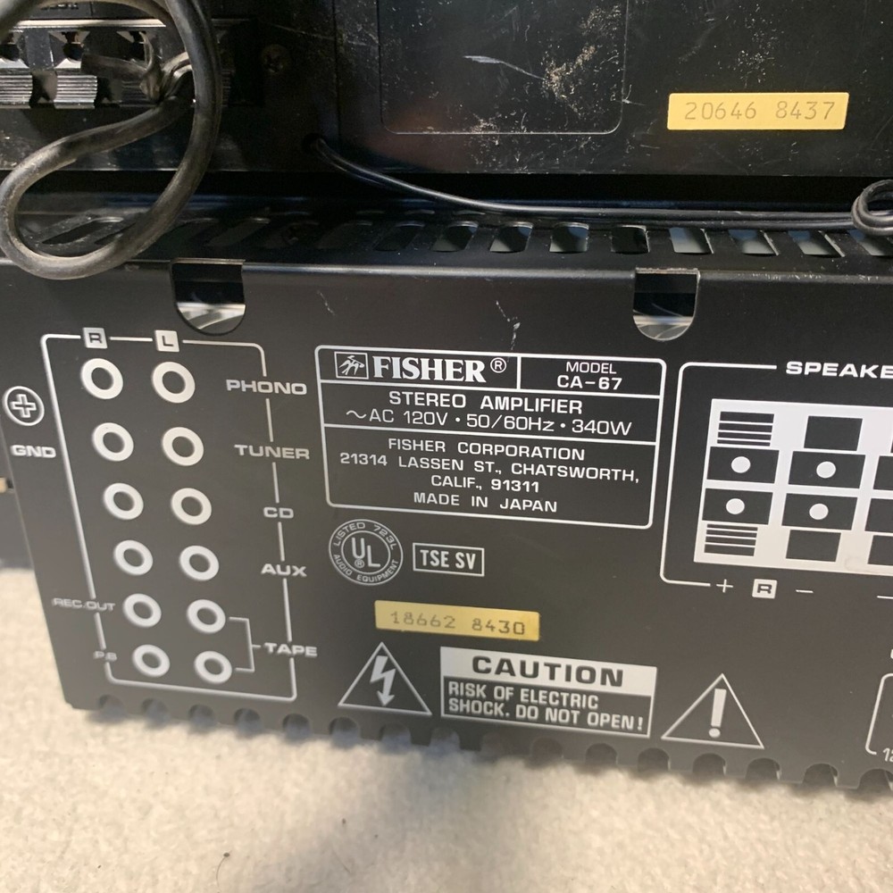 Fisher CA-67 Stereo Amplifier, FM-67 Stereo Tuner, CR-W41 Power On UNTESTED They all power on but are all untested. The CR-W41 I would say is in need of repair or is for parts because I cant get the tape deck to work as they should and it makes a noise. PLEASE SEE PICTURES FOR MORE DETAILS