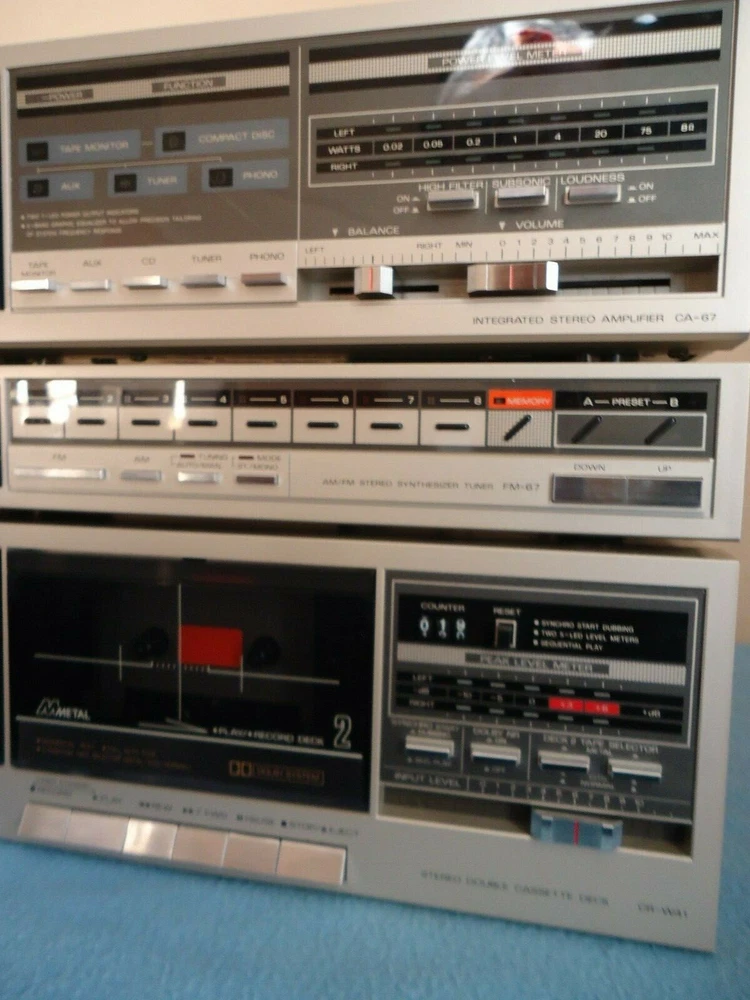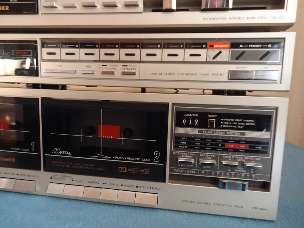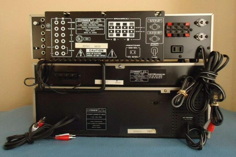 Please read the description completely Fisher CA-67 Stereo Amplifier / FM-67 Tuner / CR-W45 Double Cassette Deck (speakers and turntable from this set are in another listing) set of vintage stereo system, expect to see small dents and scratches, everything works as it should, I put new belts on the deck, the entire system was built in Japan. Please do not assume... see video, photos and ask your questions before you buy photos are considered as part of the description Video: Fisher Stereo System Video sold for parts or not working, regardless of what was described above, these speakers are for parts or not working to protect me from people on the site, these people buy to switch or steal parts... then they say that what was sent is not as described and will not play their game, so I show on video of what you're buying