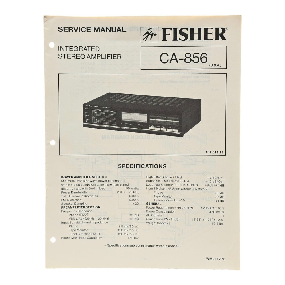 This is a service manual for the Fisher CA-856 integrated stereo dc amplifier. This manual also has the schematics. Please message me if you have any questions, and I thank you so very much for looking at my Fisher stereo amplifier service manual.