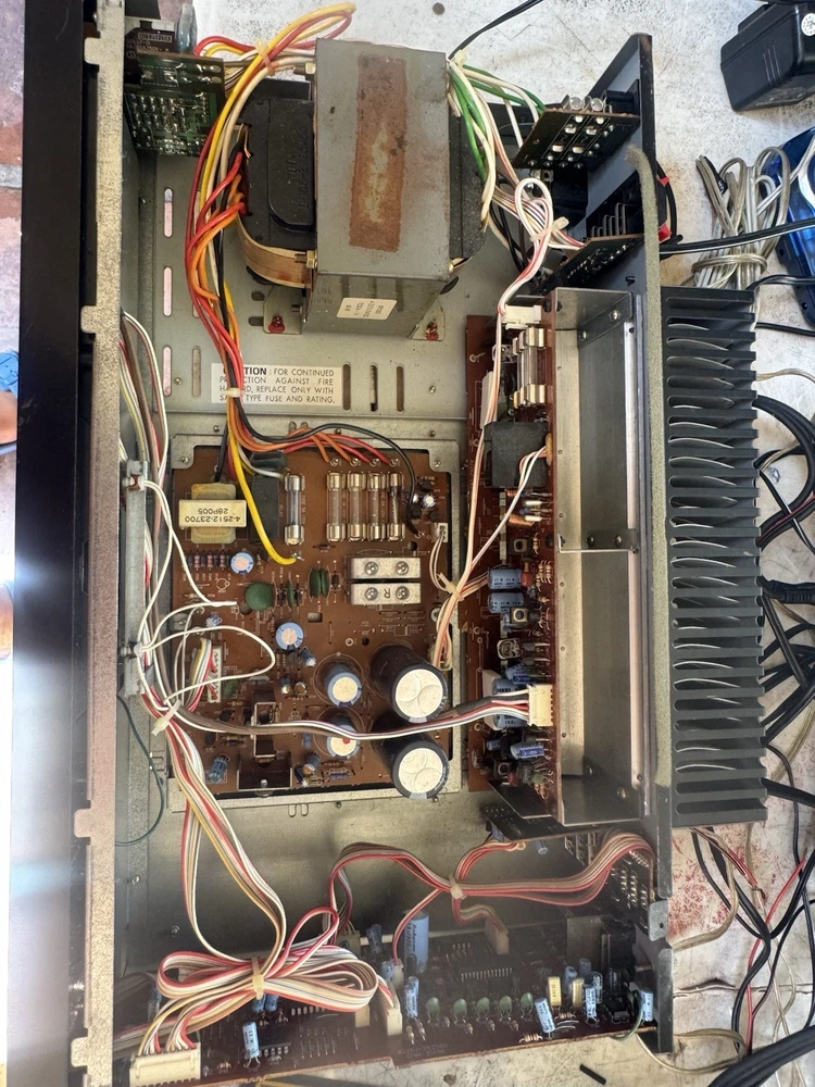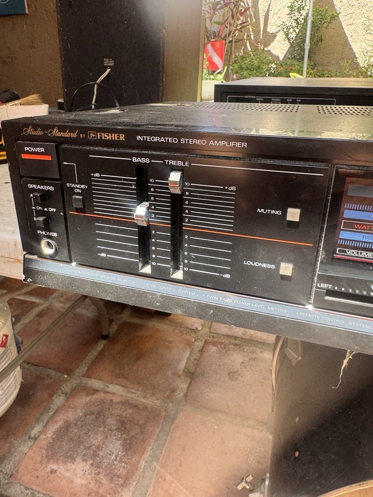 Fisher integrated amp stereo 100 watts per channel Light ok but no sound and fuse blowout one inside circuit board Sale as is for parts Face clean nobody touch inside
