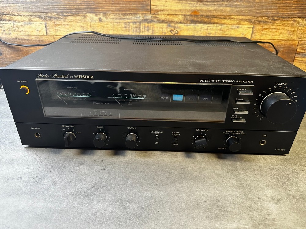 Fisher CA-880 Studio Standard Integrated Stereo Amplifier Phono Tuner Aux Bass Description Fisher CA-880 Studio Standard Integrated Stereo Amplifier Phono Tuner Aux Bass . Product Detail • Brand : Fisher • Model: Fisher CA-880 • Color : Black • Type: Integrated Stereo Amplifier ADDITIONAL INFO: GENERALLY ALL ORDERS PLACED WILL GO OUT ON MONDAY/TUESDAY AND THEN ON FRIDAY/SATURDAY DEPENDING ON YOUR ORDERS TIME AND DAY IT WAS ORDERED. ANY ORDERS PLACED ON ONE OF OUR SHIPPING DAYS WILL THEN GO OUT ON THE PROCEEDING SHIPPING DAY. IF A PACKAGE NEEDS TO BE RECEIVED MORE URGENTLY BY THE BUYER, THEN PLEASE MESSAGE US AND WE WILL DO OUR ABSOLUTE BEST MAKE AN EXCEPTION AND GET IT OUT FOR YOU THE SAME DAY(WHICH INVOLVES US GOING TO OUR WAREHOUSE WHERE OUR INVENTORY IS KEPT TO RETRIEVE JUST THAT SINGLE ITEM). WE PRIDE OURSELVES ON GETTING OUR PACKAGES OUT TO CUSTOMERS IN A QUICK MANNER SO THEY CAN RECEIVE AND ENJOY THEIR PURCHASED ITEMS AS SOON AS POSSIBLE. LASTLY, PLEASE KNOW THAT ON OCCASIONS DELAYS WITH THE SHIPPING CARRIERS DO HAPPEN, AND IT IS COMPLETELY OUT OF OUR CONTROL. PLEASE LOOK AT PHOTOS AND SIZES CAREFULLY, AS WE DO NOT ACCEPT RETURNS. ALL ITEMS THAT ARE PURCHASED THAT HAVE A VALUE OF ROUGHLY $100 AND UP ARE DOCUMENTED VIA VIDEO TO SHOW FUNCTIONALITY AND CONDITION TO AVOID FRAUDULENT RETURN CLAIMS. IN SOME CASES WE WILL MAKE EXCEPTIONS ON RETURNS AND WE LWAYS DO OUR VERY BEST TO ACCOMMODATE CANCELLATIONS IF WE SEE THEM IN TIME OR IF THE PACKAGE ISN’T ALREADY PACKED AND READY FOR SHIPMENT PRIOR TO SHIPPING LABEL BEING PRODUCED. IF YOU HAVE ANY QUESTIONS AT ALL, PLEASE FEEL FREE TO MESSAGE US HERE ON EBAY. .