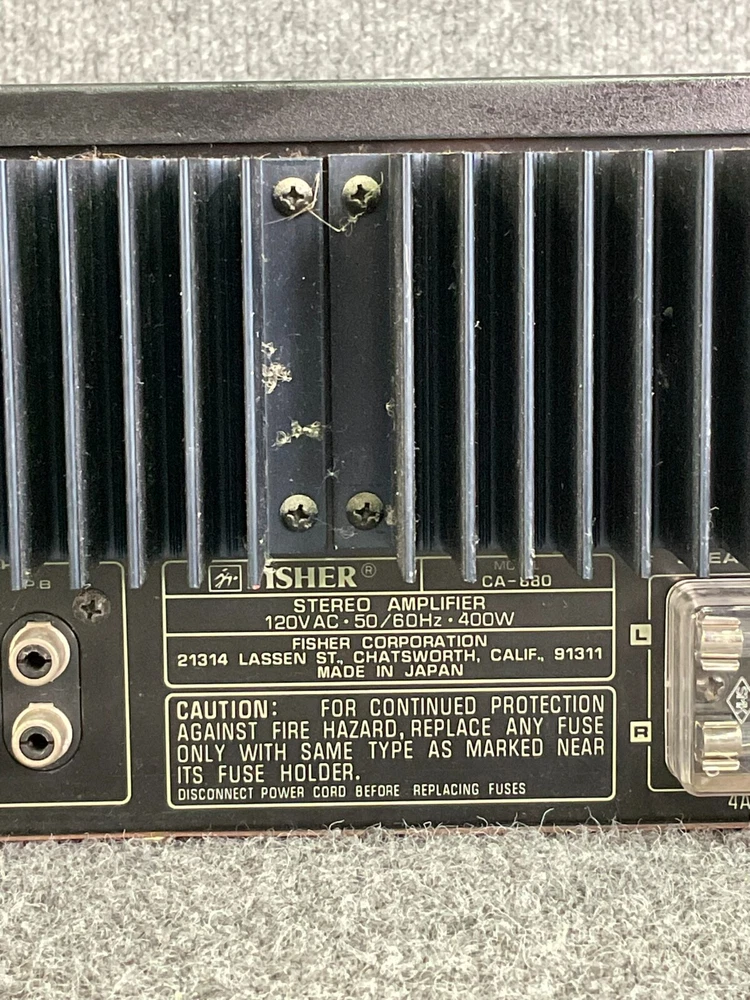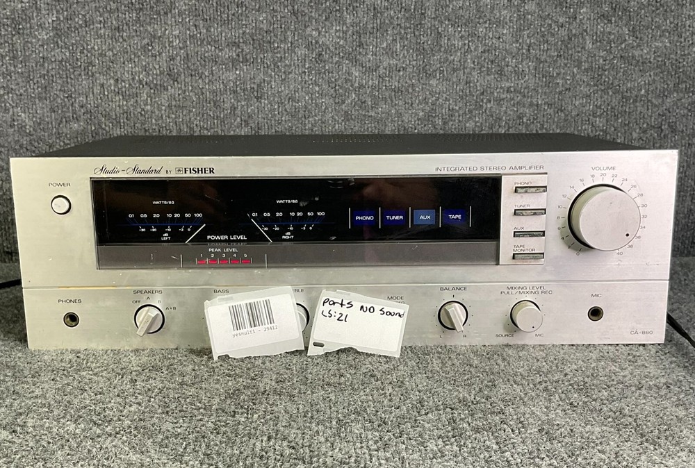 Fisher Studio Standard CA-880 Vintage Integrated Stereo Amplifier- For Parts Fisher Studio Standard CA-880 Vintage Integrated Stereo Amplifier- For Parts Product Detail • Brand : Fisher • Model : CA-880 • Type : Integrated Amplifier • Weight : 21 lbs. • Condition : For Parts Only: Non-functional No Sound, sold as-is, no returns. Ideal for repairs or spare parts. PLEASE NOTE: This item does not come with any accessories unless they are specifically mentioned in the listing description. It only comes with what is pictured. Please review the pictures before making a purchase. We value your business and encourage you to send a message if you have any issues or concerns I answer most questions instantly! Thank you! Customer satisfaction is our top priority. All products undergo quality checks to ensure they are in good condition when shipped to our customers. If a product is defective or damaged upon arrival, or if the wrong product is shipped, please understand that this is not intentional, as we have to pay for the shipping and the return. Please contact us immediately. “Returns are accepted within 30 days of the delivery date, and the item must be in its original new condition, with attached tags and wrap, and should not be worn or altered in any way. Otherwise, the sale is considered final. We cover all shipping costs for returns. Please contact us first if you have any problems, questions, or concerns.” We will be happy to resolve any issues you may have in a courteous and friendly manner. We appreciate your positive feedback and will do the same in return. Please do not leave negative feedback without first communicating with us. Please allow a maximum of 2 business days for us to respond.