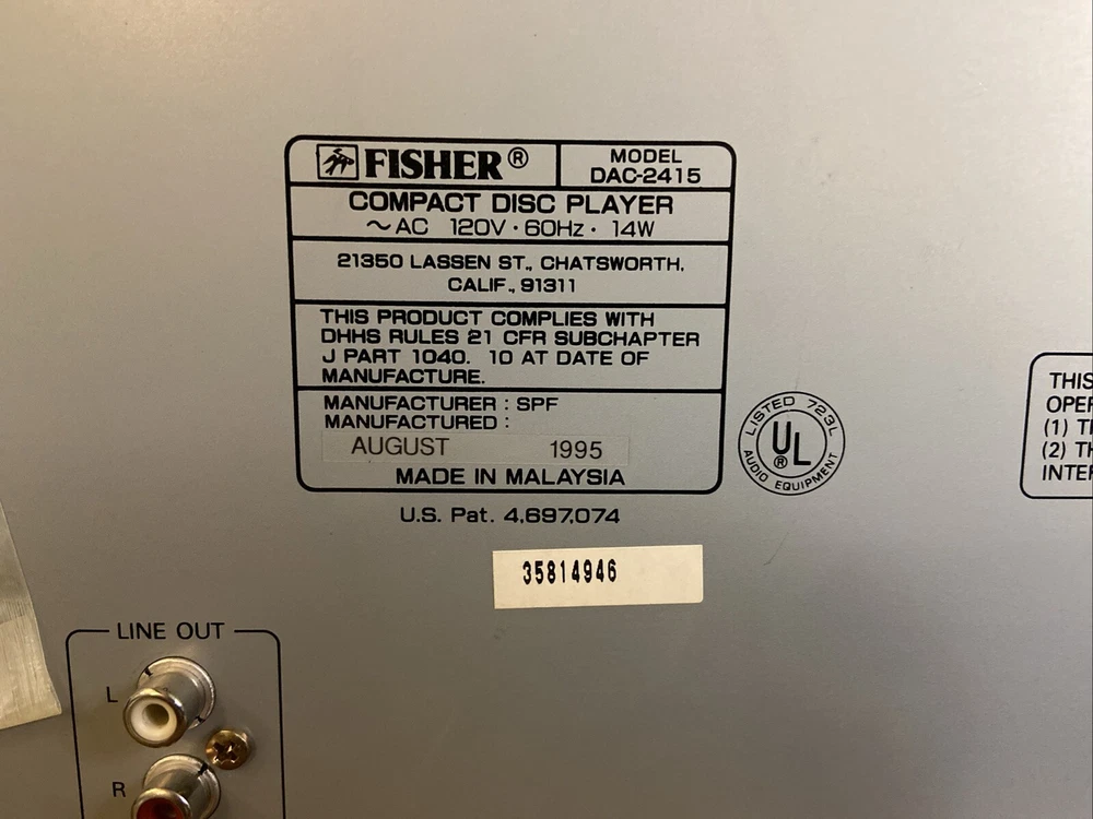 Fisher CD 24 Disc Changer Compact Player Studio Standard HiFi Model DAC-2415 Good working condition, has been tested on all functions. Comes with remote. Please refer to the photos.