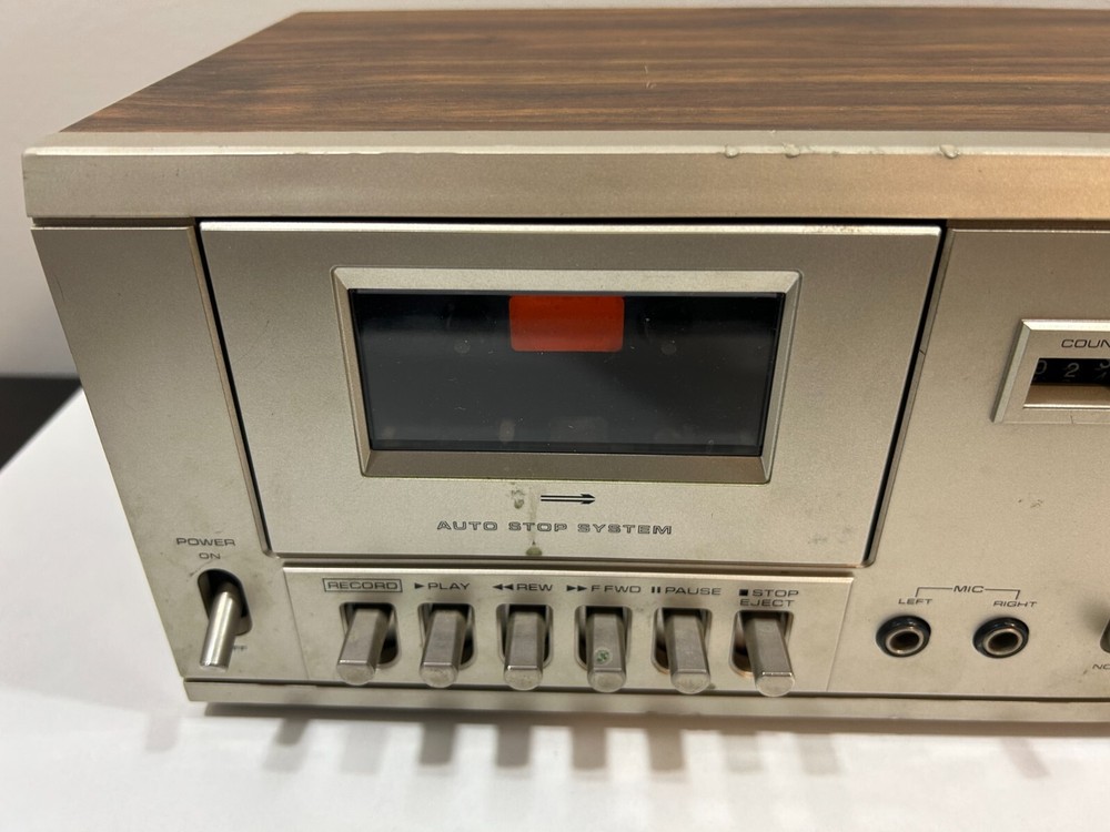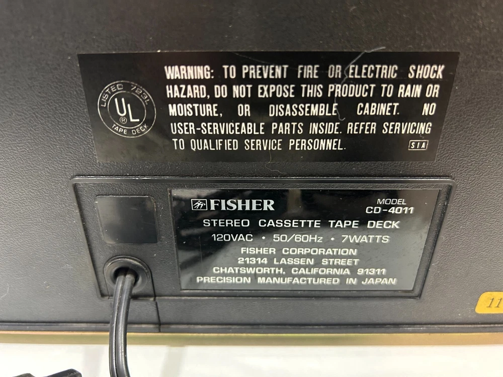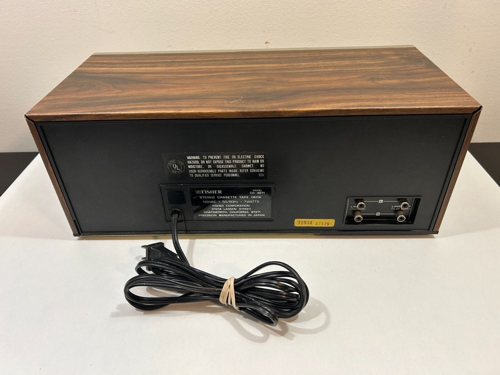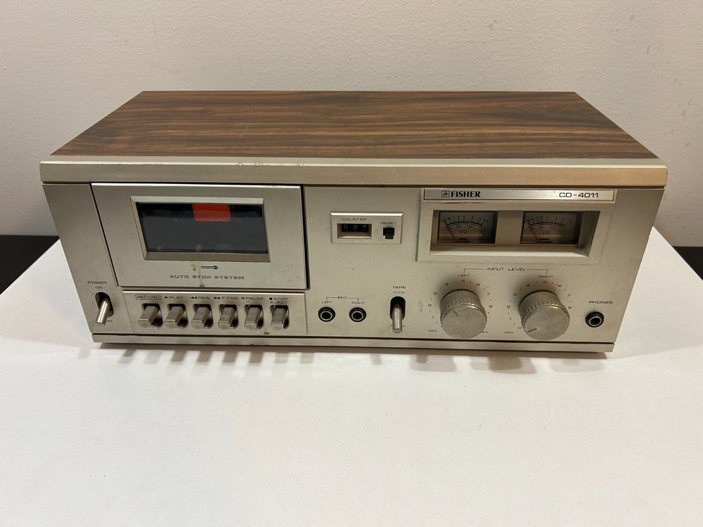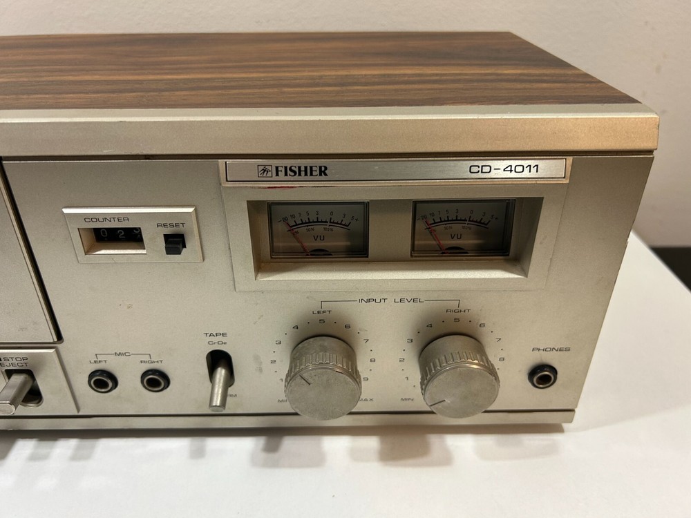Up for sale is a vintage Fisher CD-4011 stereo cassette deck. The unit powers on and plays but the FF and RW are not working and will need some repair. The FF/RW buttons don't depress all the way. It is in good condition but has some blemishes. Please see the pictures. Thanks for looking!