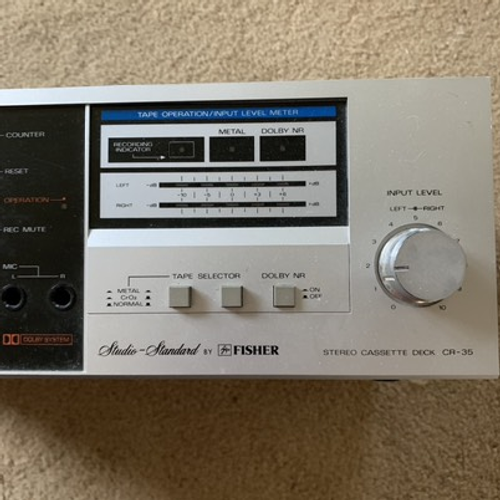 Fisher CR-35 Stereo Cassette Deck. I was not able to test this due to the type of AC power plug. May work perfectly, may be good for parts.