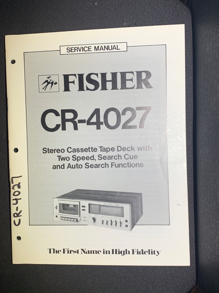 I am selling a Fisher CR-4027 Service Manual Stereo Cassette Tape Deck Two Speed Search Cue And Auto Search Functions Original.. Item was used at a repair center .. Item will be shipped USPS First Class or Media Mail..