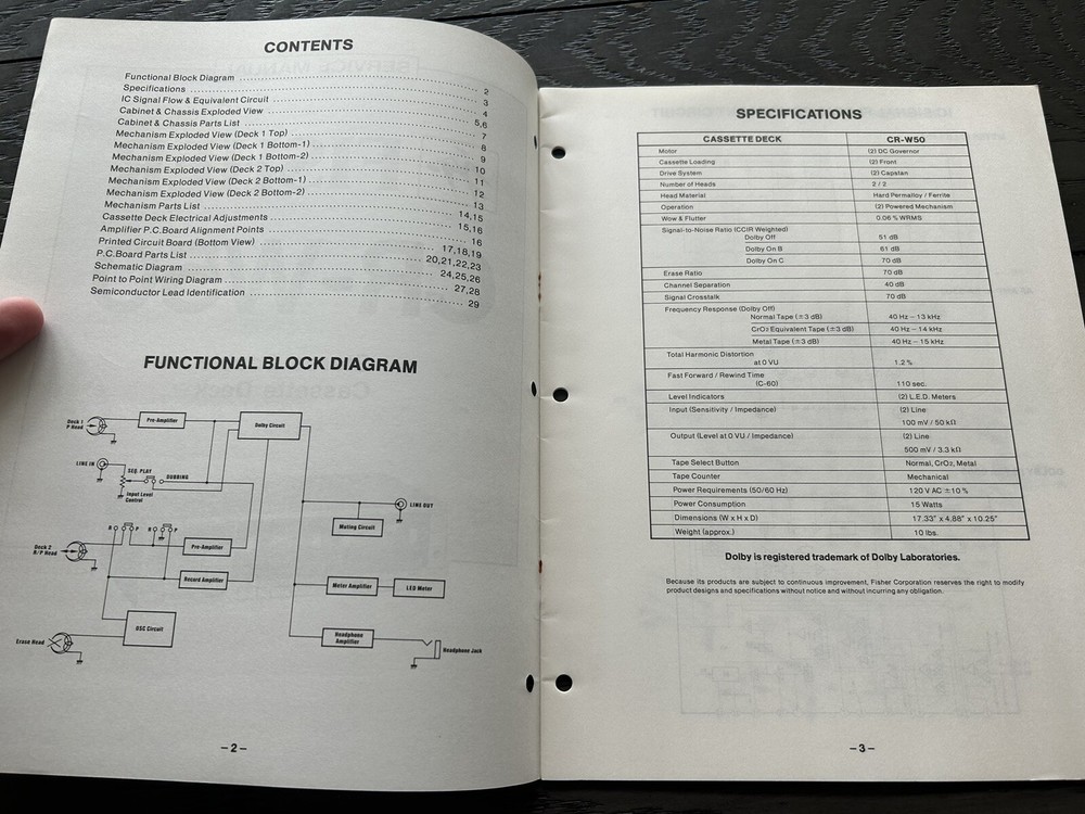 Fisher CR-W50 Stereo Cassette Deck Service Manual with Vintage OEM Diagrams
