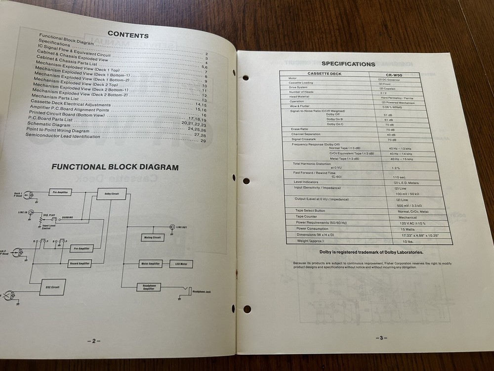 Fisher CR-W50 Vintage Stereo Double Cassette Deck Service Manual with OEM Diagrams