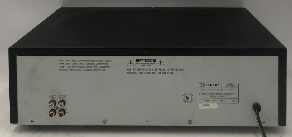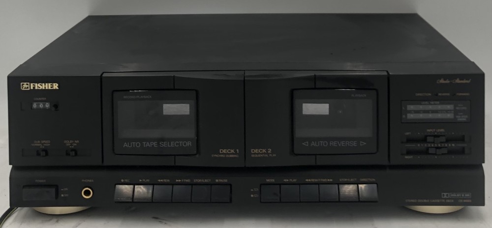 Condition Note: Used Fisher Stereo Double Cassette Deck Model: CR-W683 Features: Deck 1- Synchro Dubbing; Deck 2- Sequential Play Rear RCA Connectors: 1- Line In (REC), 1- Line Out (Play) AC: 120V, 60Hz, 24W Cassette Deck Only- No Additional Cables, Accessories, Remotes, or Software Included.