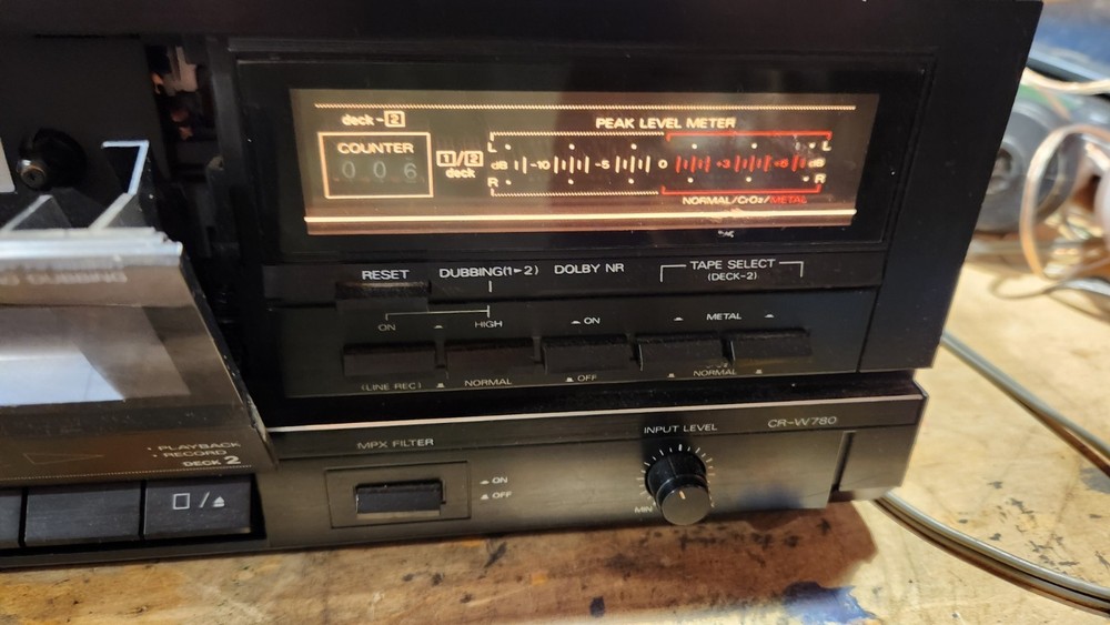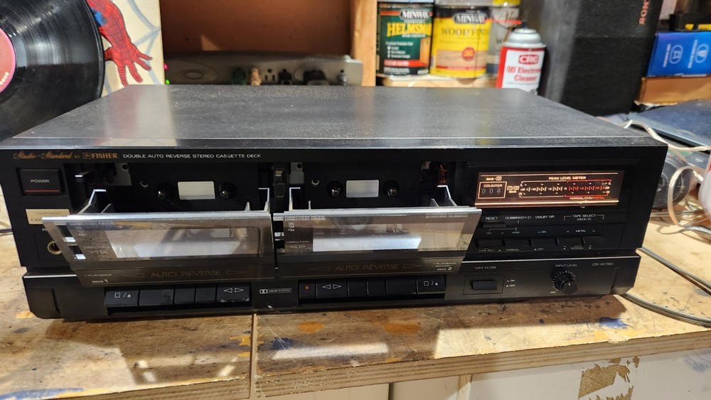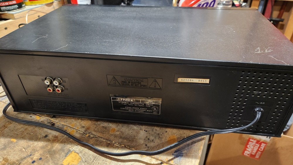 This Fisher deck looks fantastic and powers on! I'm betting it just needs new belts to work perfectly. Great find for anyone who enjoys restoring vintage audio gear.