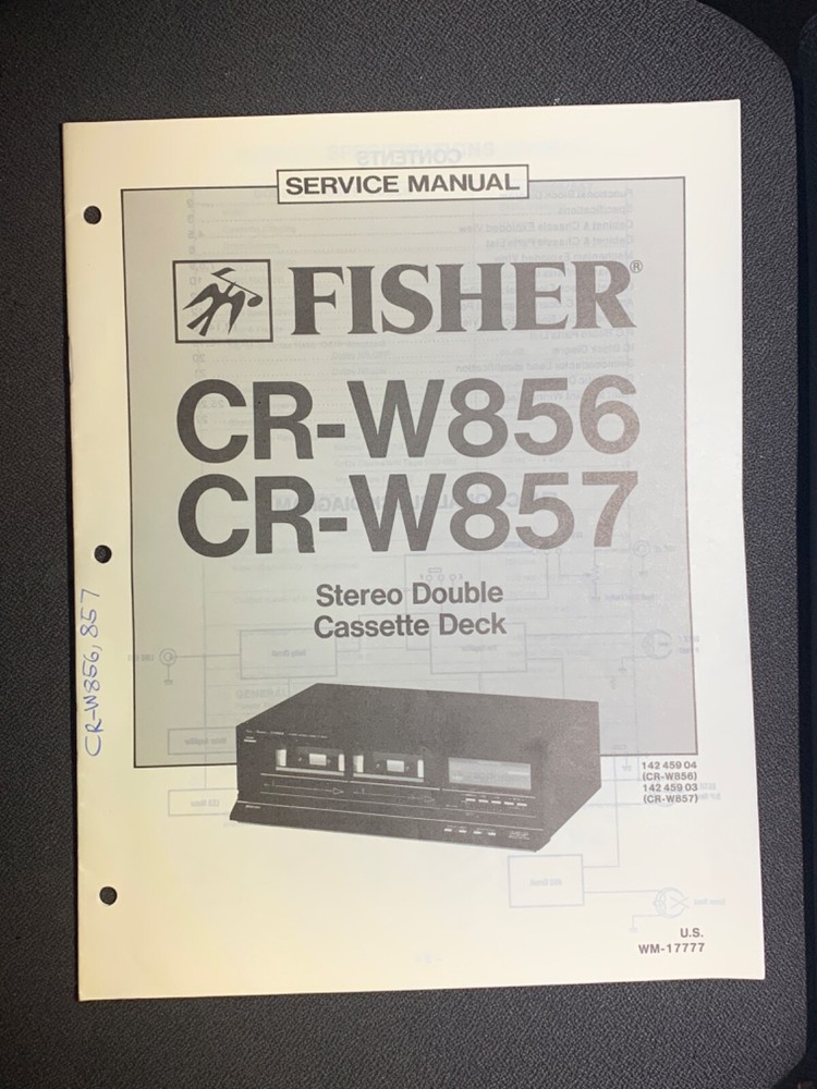 I am selling aFisher CR-W856 CR-W857 Service Manual Stereo Double Cassette Deck Original.. Item was used at a repair center .. Item will be shipped USPS First Class or Media Mail.....