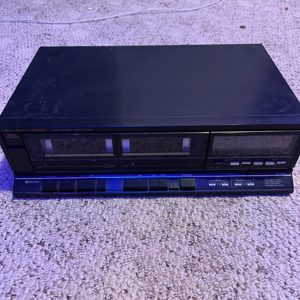 This vintage Fisher CR-W872 stereo double cassette deck is a rare find for any collector of vintage audio and video equipment. Made in Japan, this unit is a high-quality piece that is sure to impress any enthusiast. With the ability to watch videos and listen to music on cassette tapes, this deck is a versatile addition to any home entertainment system. The brand Fisher is known for its durable and reliable audio equipment, and this cassette deck is no exception. It is a unit type that is perfect for any vintage audio and video setup, and it comes with a unit quantity of one. Whether you're a collector or just someone looking for a unique piece of audio equipment, this Fisher CR-W872 stereo double cassette deck is sure to impress.
