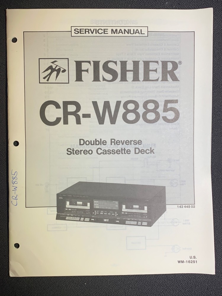 I am selling a Fisher CR-W885 Service Manual Double Reverse Stereo Cassette Deck Original.. Item was used at a repair center .. Item will be shipped USPS First Class or Media Mail..