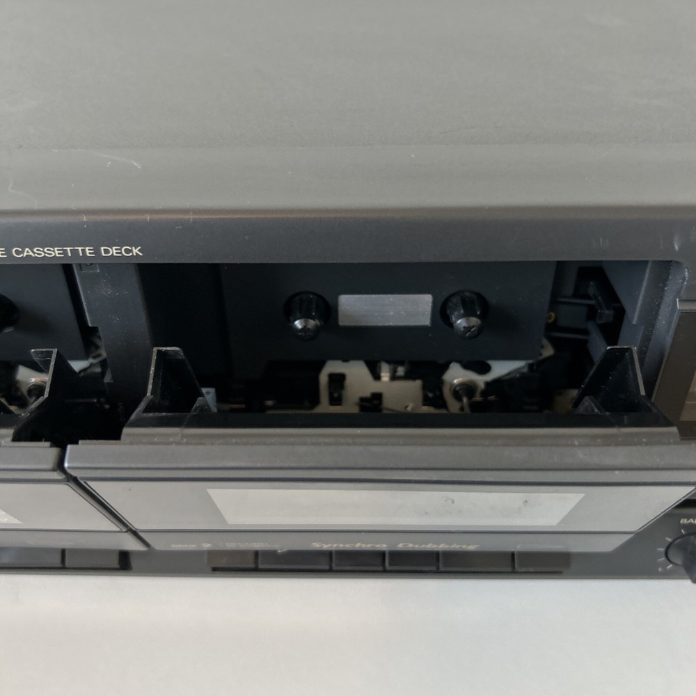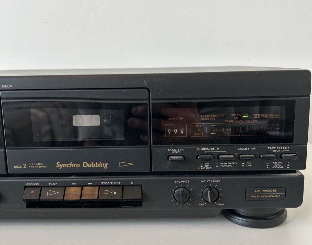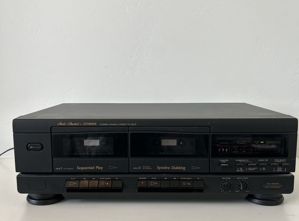 This Fisher CR-W9015 Synchronized Dubbing Double Stereo Deck Cassette Player is a great addition to your home audio components. With its 2-head design and cassette recording feature, you can enjoy your favorite tunes in a crystal-clear quality. The black color and JVC brand make it a stylish and reliable choice for anyone looking for a great cassette deck. Whether you're a collector or just looking for a reliable way to play your favorite mixes, this dual cassette deck is the perfect choice.