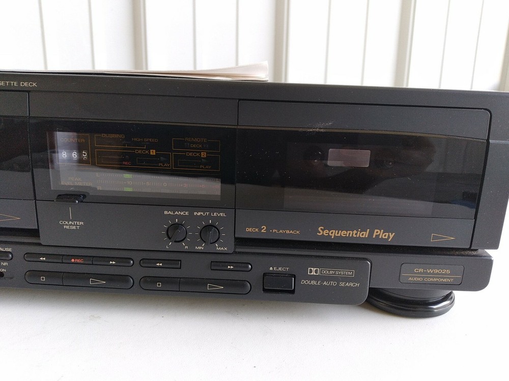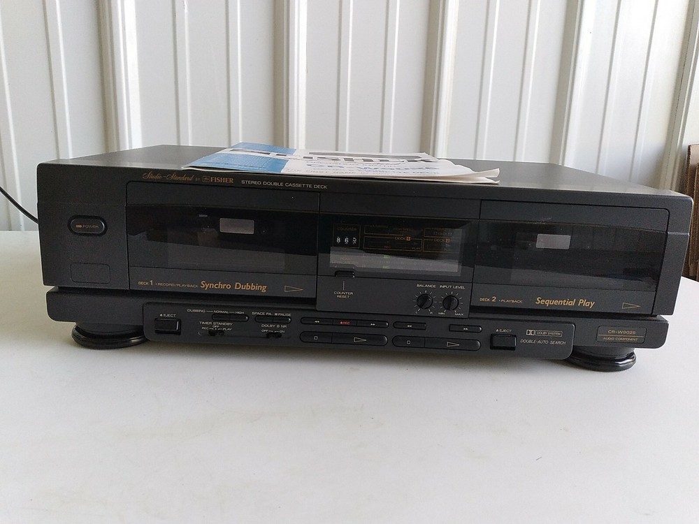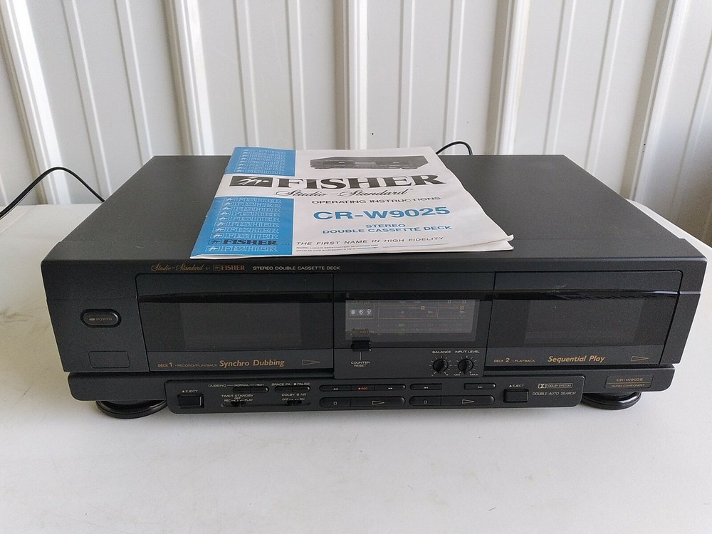 Fisher CR-W9025 Stereo Double Cassette Deck - Read Description!!!. Condition is "For parts or not working". Shipped with USPS Priority Mail Or FedEx. Powers up and the tape is running too fast without any sound. No sound comes out. I'm selling it as for parts or repairs only. Fast shipping!!!