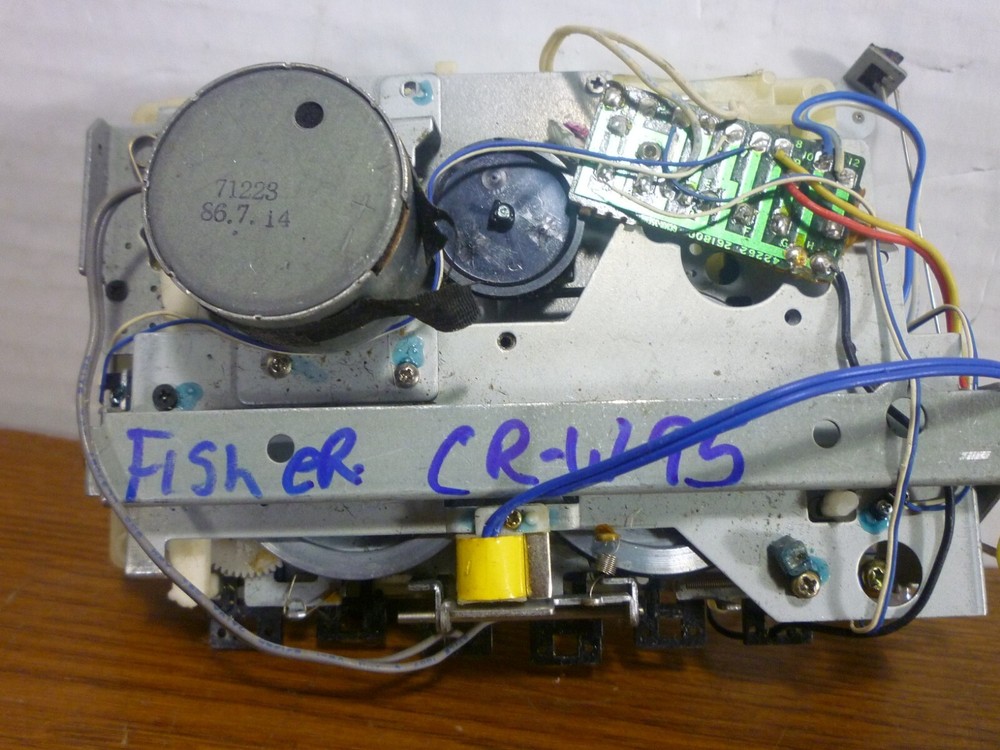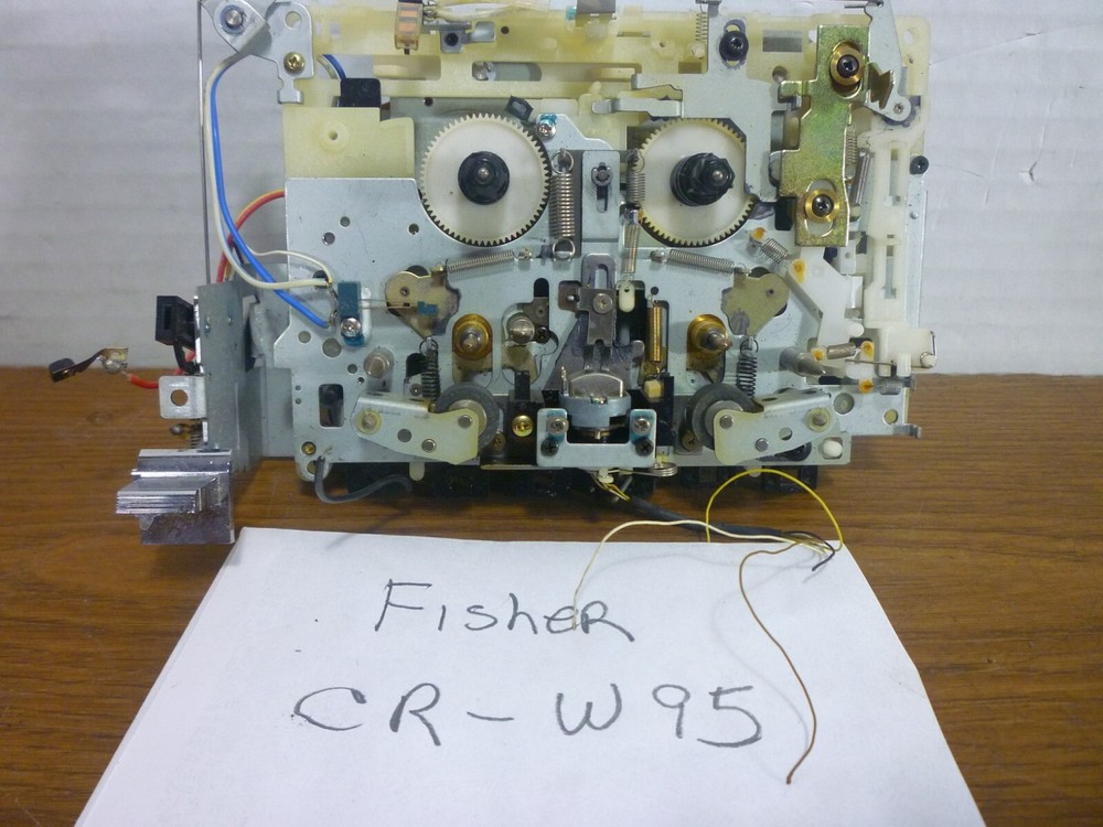 Fisher Stereo Cassette Tape Mechanism Model CR-W95 This is a salvaged part that looks to be mostly complete (but no door included) The attached motor has obvious damage so I am including an additional motor from a Fisher machine. I did perform a quick test to the motor (12V) and it did work. No other testing was done full function of this mechanism is unknown. Being sold as pictured for parts or repair with no returns Thank you for looking
