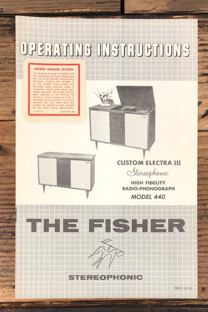 Fisher Custom Electra IIIModel 440 Stereo Owner / User Manual *Original* Feature Details Type of Document: Service Manual Condition: Used:Good Original Manual / Copy: Original Shipping: We ship worldwide using waterproof mailers and cardboard backing. Yes, we combine shipping. Please contact us for rates. Important: This is an ORIGINAL PHYSICAL DOCUMENT , not a photocopy, reprint, or digital version. There may be some wear & tear since most of these are decades old. Tech's notes are occasionally written inside the manual; they often include helpful hints, tips, or prices.