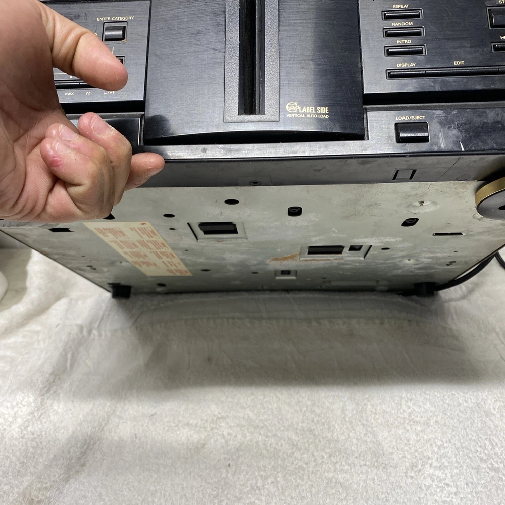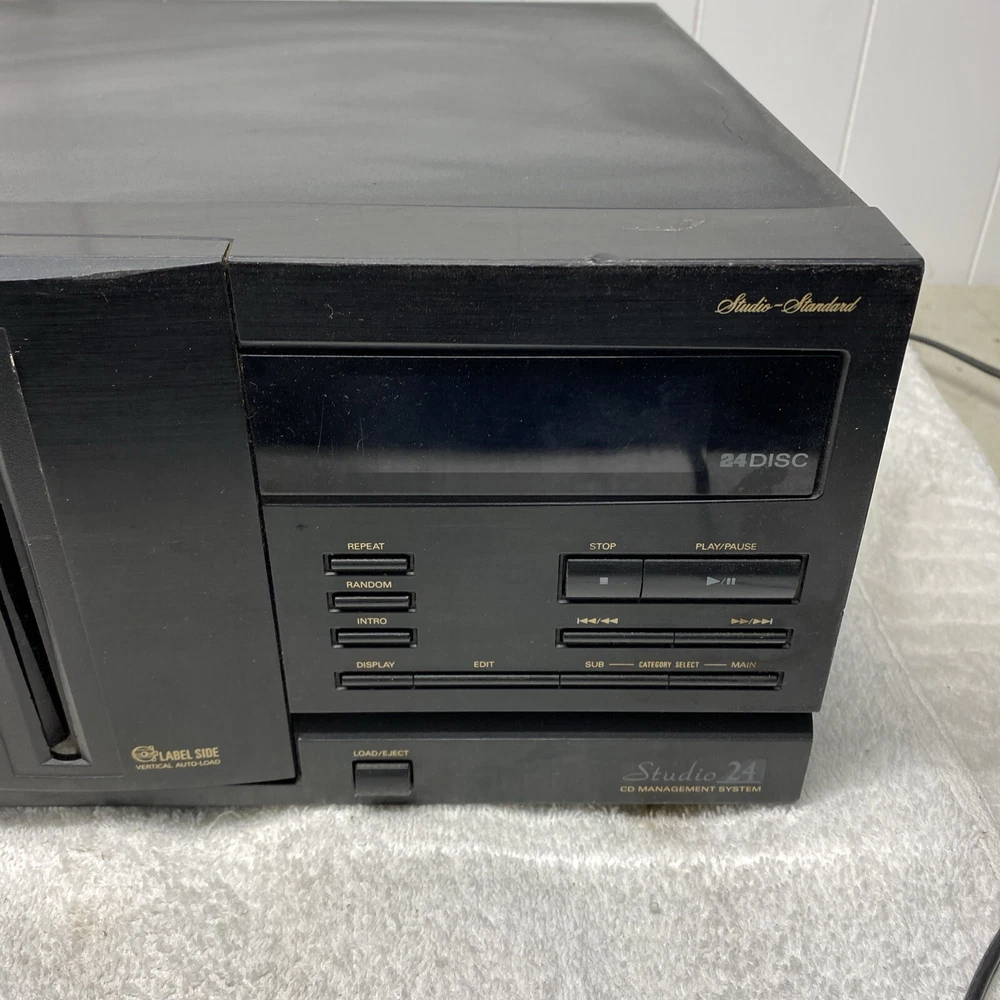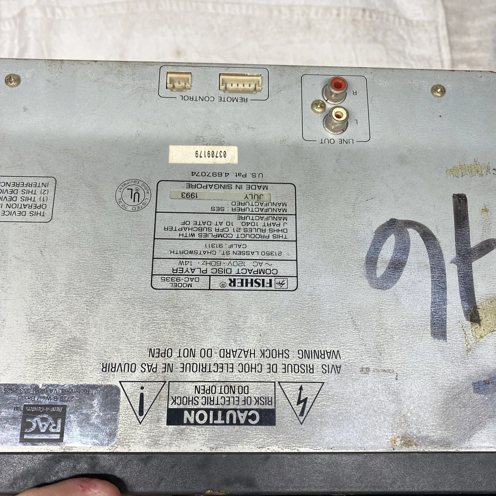 This Fisher DAC-2403 Studio 24 CD Management System Compact Disc Player is a great addition to any home audio setup. With a CD changer capacity of 24, it allows for hours of uninterrupted music listening. The stereo L/R RCA audio outputs ensure high-quality sound output. This product has not been tested, but it is sold as is. It comes in black color and was manufactured in Singapore. It is a CD player type and playable media format is CD. The item is branded Fisher and model number is DAC-2403. Purchase this CD player to enjoy your favorite music in a classic way.