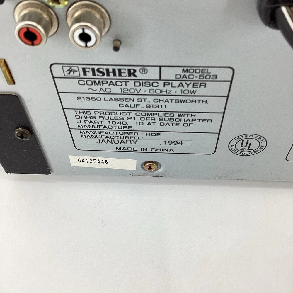 Fisher model DAC-503 Automatic Digital 5 Disc CD Changer *no remote* Tested/Working missing 1 back peg leg black Please reach out with any questions you may have. We will get back to you as soon as po...