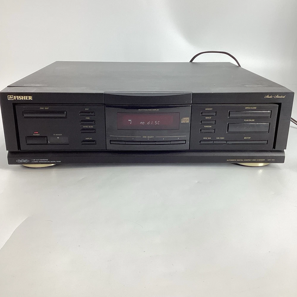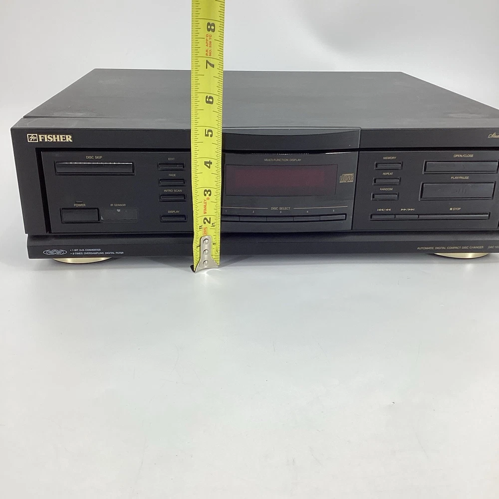 Fisher model DAC-503 Automatic Digital 5 Disc CD Changer *no remote* Tested/Working missing 1 back peg leg black Please reach out with any questions you may have. We will get back to you as soon as possible. Thank you