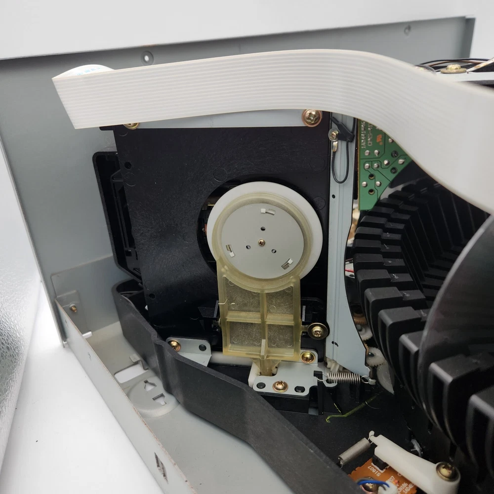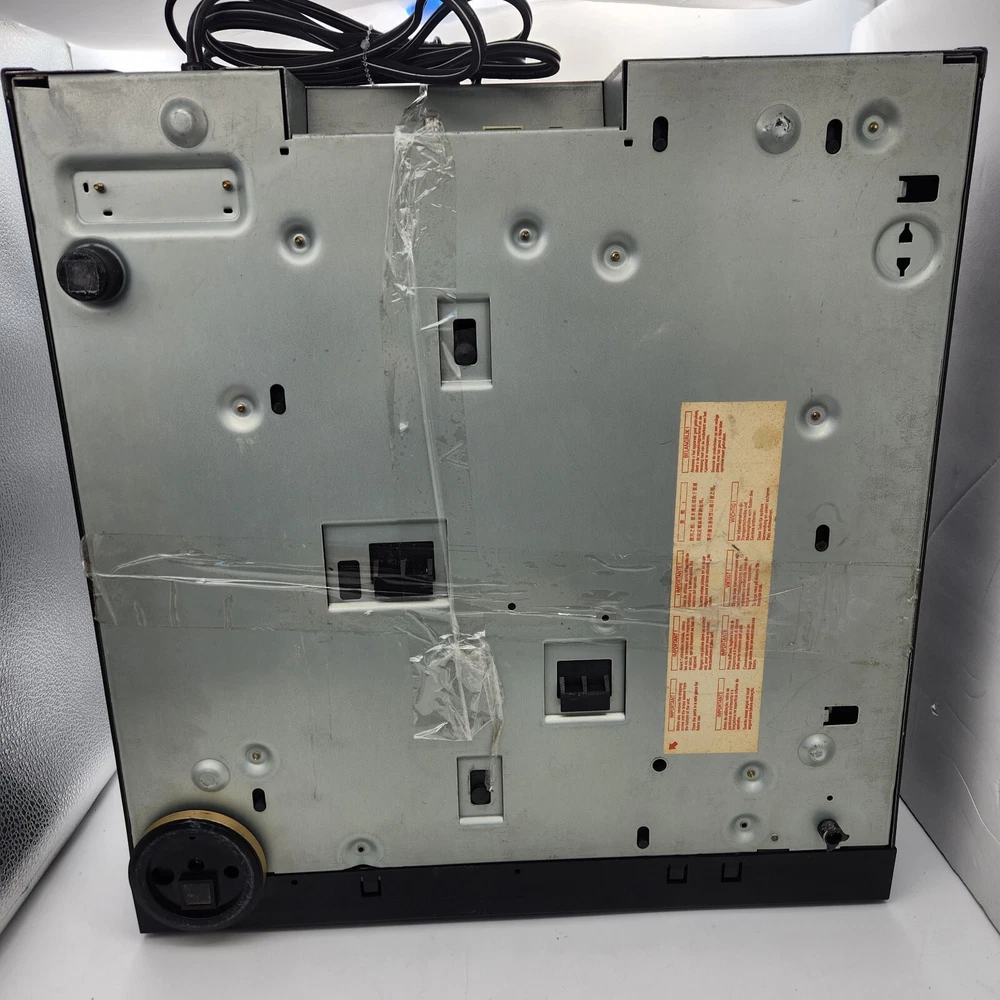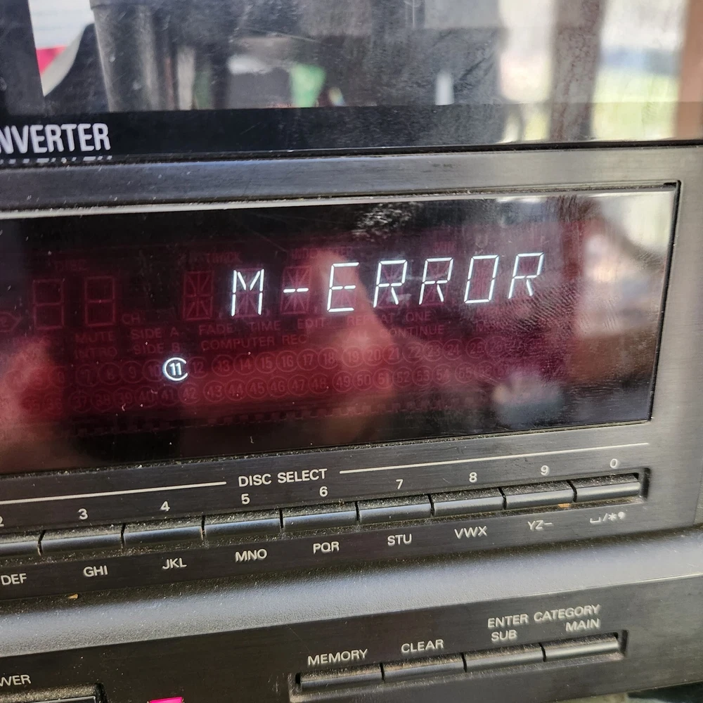 For parts and not working properly. Disc holder spins, but once a disc was inserted in the "reading" slot, it could not get ejected. I kept getting an "M-ERROR" code across the screen. The internals are very clean. The face has some sticky gunk down the front. Some scratching on the screen. Sold as is, so please see ALL pictures for an accurate representation of its condition. If you have any questions or concerns about it, please feel free to contact me!