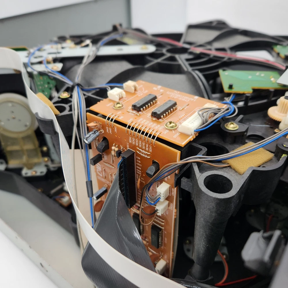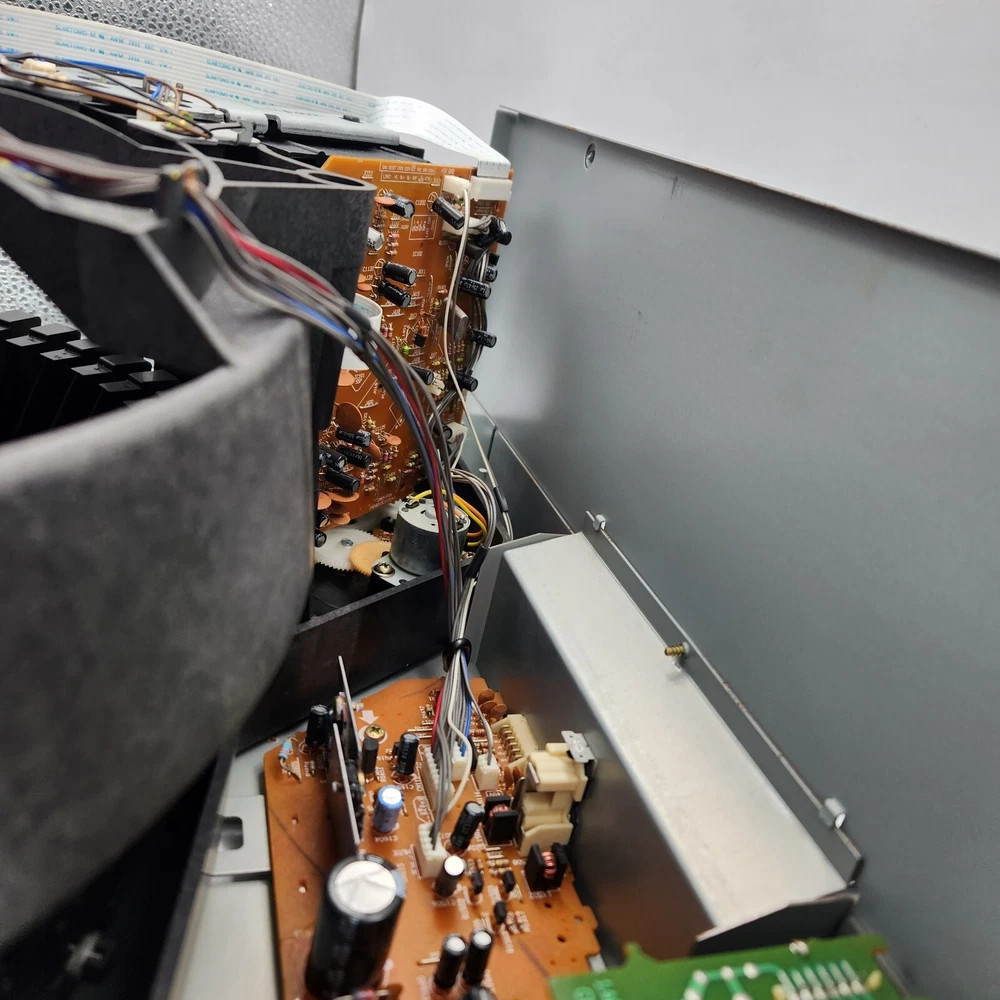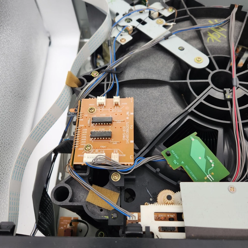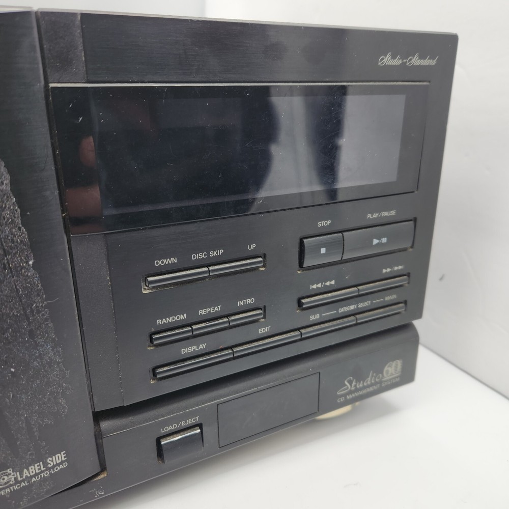 For parts and not working properly. Disc holder spins, but once a disc was inserted in the "reading" slot, it could not get ejected. I kept getting an "M-ERROR" code across the screen. The internals are very clean. The face has some sticky gunk down the front. Some scratching on the screen. Sold as is, so please see ALL pictures for an accurate representation of its condition. If you have any questions or concerns about it, please feel free to contact me!