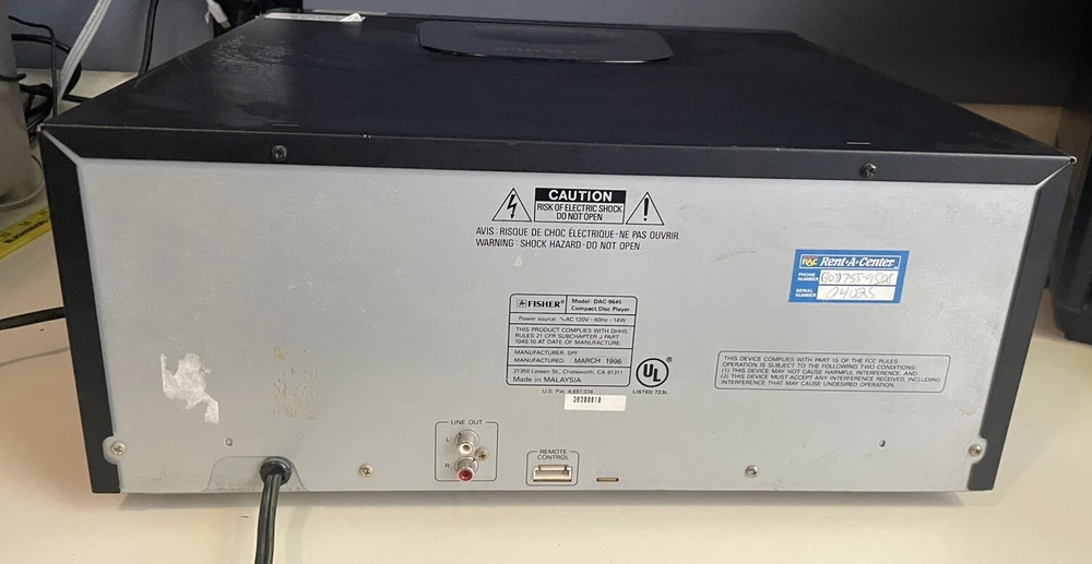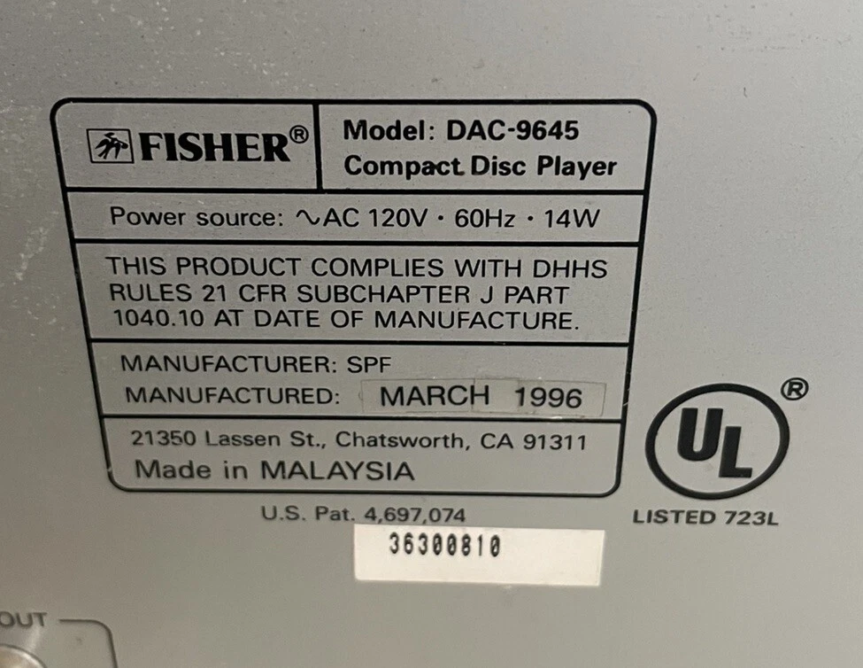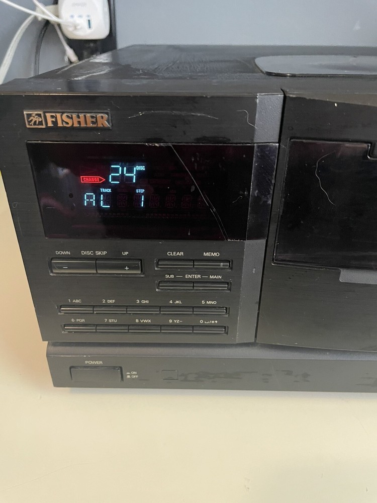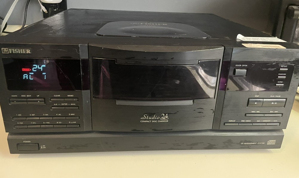 This item is untested. It turns on and appears to be working as it should, but was not tested for CD play. This item is sold as is with no returns. The Fisher DAC-9645 Studio 24 CD Compact Disc Changer is a black CD player from 1996 that can hold up to 24 discs. It features stereo L/R RCA audio outputs and is designed to play CD media format. This CD changer is suitable for home audio systems and offers a convenient way to enjoy music collection. Keep in mind that this product is untested, so the functionality is uncertain.