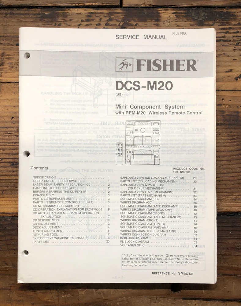 Fisher DCS-M20 Stereo Service Manual *Original*
