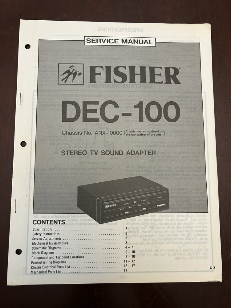 Fisher DEC-100 Stereo TV Sound Adapter Vintage Service Manual with OEM Diagrams