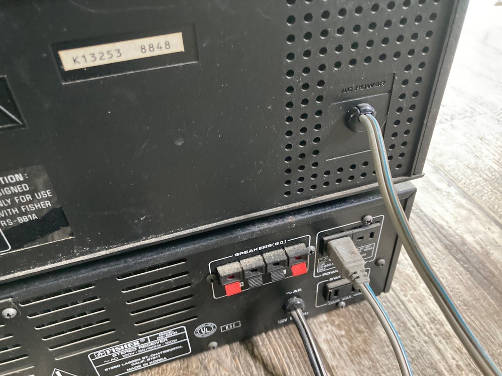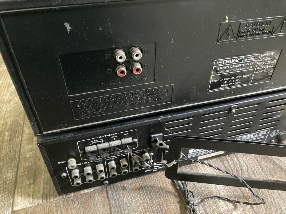 For sale, Fisher Stereo Receiver/Amplifier and Cassette Deck, Models RS-881R and CR-W881A for Parts or Repair. Units both power up, Receiver tested with headphones and FM Radio. Tarnishing on top of receiver and some on deck, all controls and knobs/buttons appear intact. No remote included. Thanks for looking!
