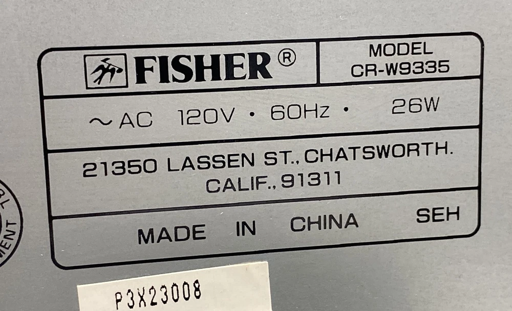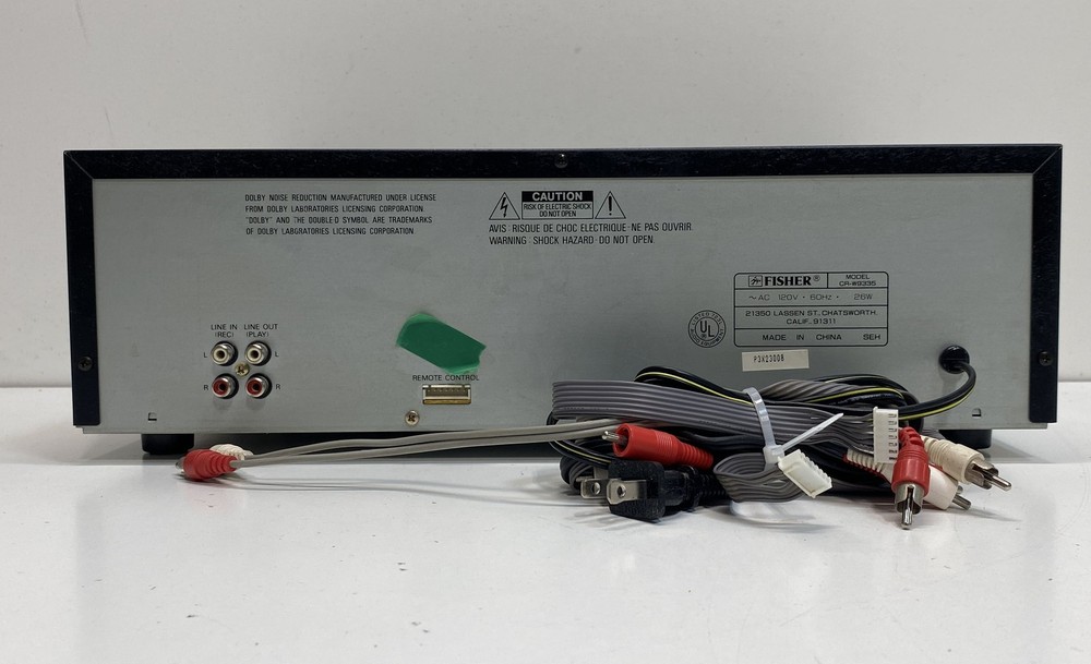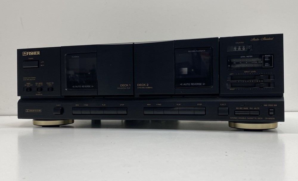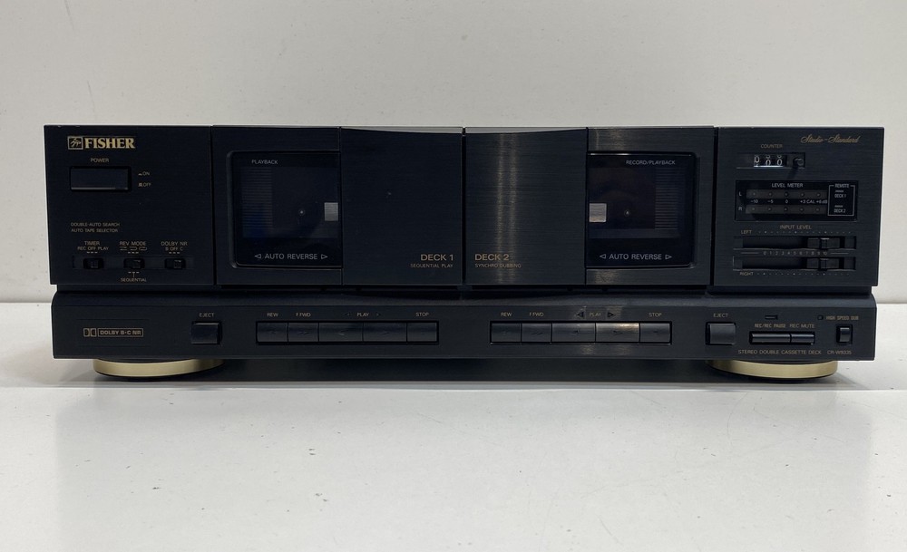 Title : Fisher Dual Deck Cassette Stereo Condition : Used Brand : Fisher Model : CR-W9335 Type : Cassette Deck Number of Channels : 2 Number of Inputs : 2 Number of Outputs : 2 Surround Sound Formats : Stereo Audio Outputs : RCA Color : Black Band : Cassette Receiver Combo Features : Cassette Playback Supported Modes : Auto Reverse Features : Dual Deck Power : 26W MPN : CR-W9335 Unit Type : Unit Amplifier Class : Integrated Country/Region of Manufacture : China Compatible Product : Home Audio Functionality : Cassette Playback Recording Serial Number : P3X23008 Accessories Included : Audio Cables Length : 16.5in Width : 11.5in Height : 5in Decks : 2 Studio Standard : Yes Dolby NR : B C Power Source : AC Display : Level Meter Cassette Compatibility : Standard Remote Control Port : Yes Fisher CR-W9335 Brand: Fisher Model: CR-W9335 Functionality: Cassette Playback Recording Condition: Serial Number: P3X23008 Accessories Included: Audio Cables Good, sold as is, signs of wear, needs cleaning, mark, scratches, sticky, power light turned on, unable to test further, cannot guarantee functionality Local Pick up: We offer local pick up by appointment only . Please message us when you have paid for your order so that we can send you the link to book your appointment. Please note that we require an appointment for each order. We do not offer same day pick up, and require 2 business days notice so that we can ensure that your order is ready for you. For more information, please send us a message! Thank you for shopping Goodwill Southern California and for supporting our mission to provide jobs for individuals with disabilities and disadvantages. Your purchases help create jobs, hopes, and futures.