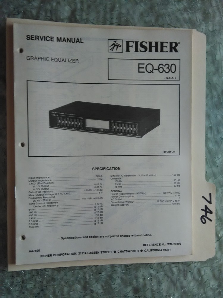 Fisher EQ-630 stereo graphic equalizer original service manual repair guide
