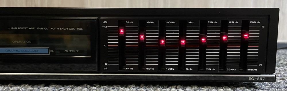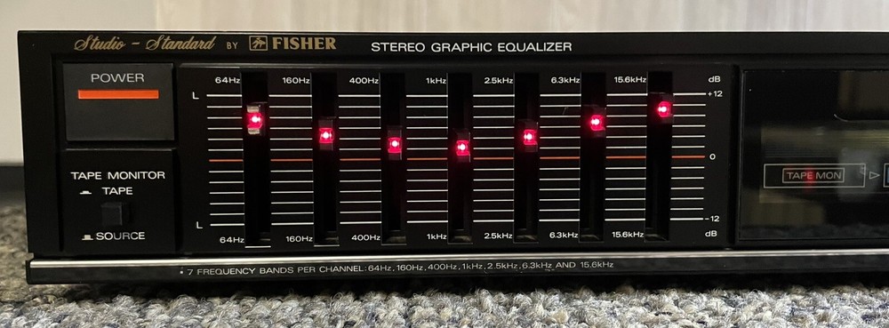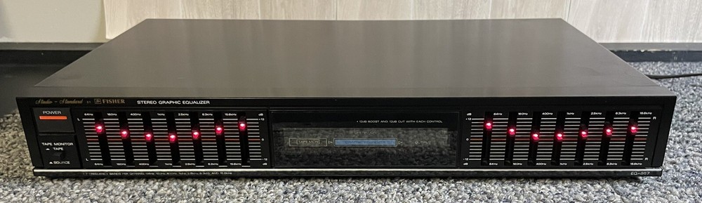 Studio Standard by Fisher EQ-867 Stereo Graphic Equalizer. Cleaned, tested, sliders cleaned and operate correctly. Cosmetically in good condition, a few scratches consistent with normal (ab)use. 17 1/...