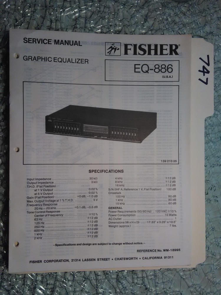 Fisher EQ-886 original stereo graphic equalizer service repair manual