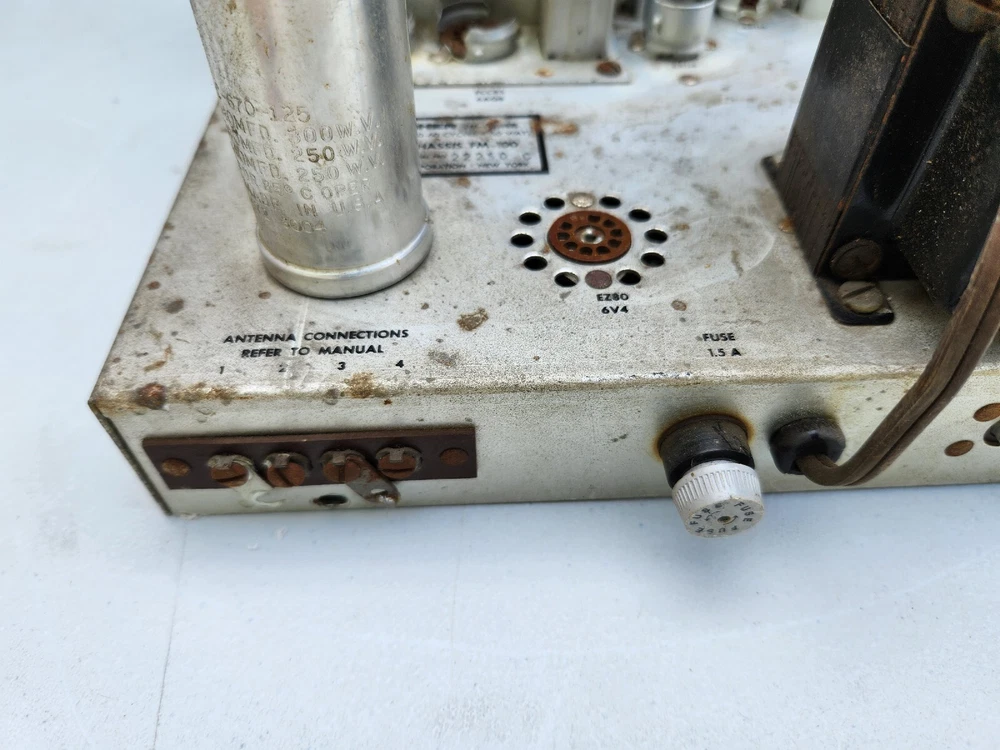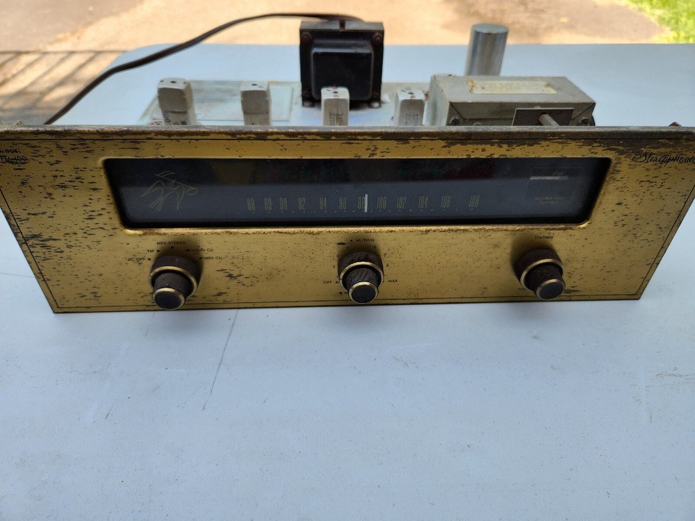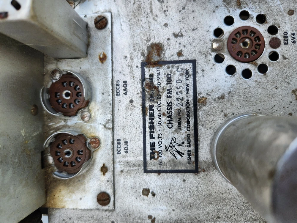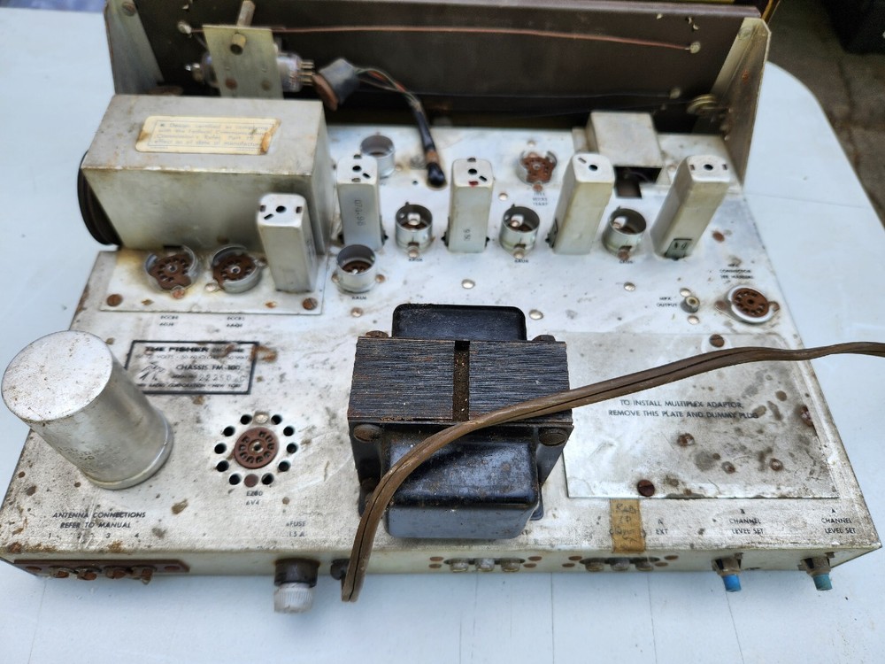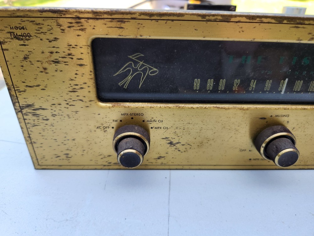 Fisher FM-100 Tube Stereo Tuner Untested. This unit is missing its tubes and is untested..selling As Is for parts or repair..unit has cosmetic wear scuffing scratches dust and rust..see pics for more detail