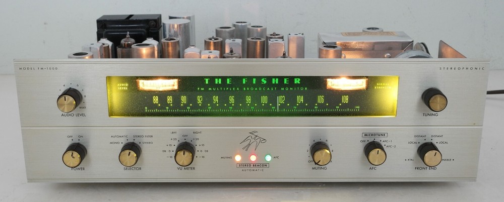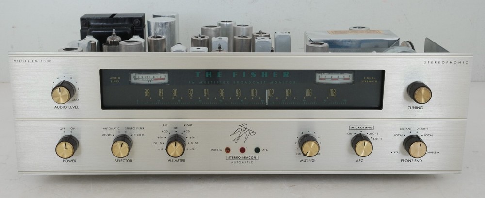 Fisher FM-1000 FM Stereo Tuner For Restoration Up for sale is a Vintage Fisher FM-1000 FM Stereo Tuner for Restoration . As the photos show, this is in excellent condition for its age. New dial display LED bulbs and feet are installed. The VU Audio Meter and Signal Strength Meters lit up however I didn't see any action when tuning in stations etc.. So, I think meters do not work. The tuner tuned in multiple staions and sounded good for me. However I suggest a full restoration and calibration. I tested tubes on my TV7B/U tube tester. V1. 6922/E88CC : ? ( Gold Pin, Minimum is 50/50.) Result : 120/120 V2/3. 6CW4 : No Test ( TV7 cannot test this tube. ) V4/5/6/7/9. 6AU6/EF94 : Fisher ( Minimum is 58.) Result : V4 = 73, V5 = 69, V6 = 98, V7 = 100, V9 = 84 V8. 6BN6 : Fisher ( Minimum is 18/23. ) Result : 28/35 V10. 6BL8/ECF80 : Telefunken ( Minimum is 34/36.) Result : 46/69 V11/12/13. 6DJ8/ECC88 : Amperex ( Minimum is 62/62.) Result : V11 = 120/120, V12 = 120/96, V13 = 120/120 V14/15. 6267/EF86 : Fisher Telefunken ( Minimum is 18.) Result : V14 = 29, V15 = 28 V100/102. 12AT7/ECC81 : Fisher Telefunken ( Min. is 50/50.) Result : V100 = 83/86, V102 = 92/104 V101. 12AX7/ECC83 : Fisher Telefunken ( Minimum is 32/32.) Result : 47/43 Please look at all the pictures for an over all condition, before bidding. All items are offered for sale locally therefore listings may end without notice ( CraigsList-Princeton ). What you see is exactly what you get. Please see the photos for condition details and judge for yourself. All items are sold in the condition shown in photos and "as is" condition, with no warranties. If you have any questions please email me. No returns please! Shipping to Continental United States Only (48 States). Thank You for looking, and good luck with your bids!!!