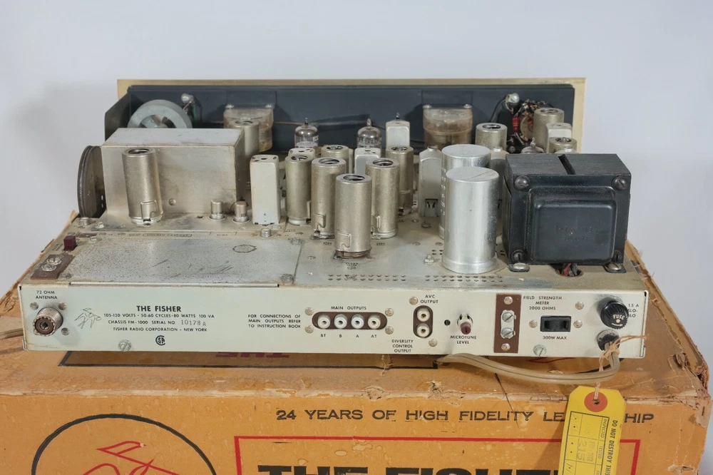 🎶 Rekindle Vintage Audio Excellence with the Fisher FM1000 Tuner! 🎶 Introducing the illustrious Fisher FM1000 Tuner with very rear champagne faceplate , an epitome of vintage audio sophistication and an emblem of an era marked by unparalleled audio craftsmanship. More than just a component, it stands as a revered relic, inviting true enthusiasts to immerse themselves in its rich legacy. It includes documentation pictured in the photos. Serial # 10178-A (chassis, box and back plate match). Condition and Performance: The Fisher FM1000 Tuner stands in impeccable, retaining its originality—boasting 90% of original tubes made in West Germany with 'Fisher' inscribed on them. Rigorously tested, it emanates the distinctive warm and immersive sound only genuine vacuum tube tuners can deliver. While its vintage nature doesn't guarantee performance, preserving its original state offers collectors and users the choice: maintain its authenticity or opt for restoration for optimal function. To aid this, a restoration kit valued at $160 accompanies it, providing invaluable support for your restoration journey. All instructions for the kit are electronically accessible, ensuring ease via online platforms. The Legacy: The Fisher FM1000 Tuner holds an iconic status in vintage audio equipment, embodying meticulous craftsmanship and sonic brilliance sought after by audiophiles and collectors. Unlocking Timeless Elegance: Exploring the Fisher FM1000 Tuner Nestled in audio history, the Fisher FM1000 Tuner emerges as a symbol of sophistication and auditory excellence. Crafted with precision and an unwavering commitment to sonic purity, this legendary tuner remains a coveted piece sought by enthusiasts. Born in an era where audio was revered as an art form, the FM1000 embodies the pinnacle of vintage audio engineering. Its allure lies in the warm, rich tones it produces, coupled with the meticulous attention paid to its design—each component a testament to an era's dedication to sonic perfection. Impeccable in construction, the FM1000 boasts a captivating blend of aesthetic elegance and technical prowess. The orchestra of its components, including the original tubes, orchestrates a melodious experience that transcends time. Its visual opulence extends to its front panel, a canvas showcasing tactile elegance through its controls. This tuner surpasses mere sound amplification; it encapsulates an era's ethos, a time when audio equipment was crafted with an artisan's touch. Its legacy extends beyond functionality—it embodies the soul of an era characterized by attention to detail and unwavering dedication to sonic fidelity. Owning a Fisher FM1000 Tuner is owning a piece of living history—a relic whispering tales of musical grandeur from decades past. Whether gracing a collector's shrine or enriching a modern setup, its presence resonates with reverence for an era when audio equipment was more than a tool but an instrument of sonic bliss. As enthusiasts seek the elusive FM1000, its scarcity only tuners its mystique, making it a coveted object among aficionados and connoisseurs. In an age where technological advancements redefine our audio landscape, the Fisher FM1000 Tuner remains a testament to an era where craftsmanship and sonic purity were paramount—an enduring homage to the artistry of sound. Specifications: Frequency Response: 20Hz to 15kHz Total Harmonic Distortion: Less than 0.05% Signal to Noise Ratio: >70dB Tube Complement: Original West German-made Fisher tubes Input Sensitivity/Impedance: Tuner: 250mV/250kΩ, AUX: 200mV/200kΩ, Tape: 150mV/150kΩ Output Level/Impedance: 0.7V/500Ω Power Requirement: AC 120V 60Hz 35W Preserving Quality: Photographed in detail, the Fisher FM1000 Tuner is meticulously encased in protective plastic shrink wrap and stored in a controlled environment, maintaining its pristine condition. Packaging Assurance: Rest assured, your Fisher FM1000 Tuner will be packaged with utmost care, ensuring it arrives in flawless condition. Moreover, for quality assurance, all vintage equipment undergoes meticulous testing for radiation exposure (Beta, Gamma) using a Geiger counter. This testing aims to provide reassurance given its age and varied storage locations over the years. Rediscover vintage audio allure with the Fisher FM1000 Tuner. Secure a piece of audio history that not only sources sound but also evokes the nostalgia of a cherished era. Seize this unparalleled opportunity to elevate your audio setup with enduring brilliance. Note: Detailed images for closer inspection are included alongside this exceptional tuner. We also offer a great selection of Restoration Kits , LED conversion kits , Volume Controls , Rotary Switches and other rare/unique parts; Make sure to check our store ---------> LINK (Use the search bar inside the shop to find what you need faster) We may also be interested in purchasing your equipment