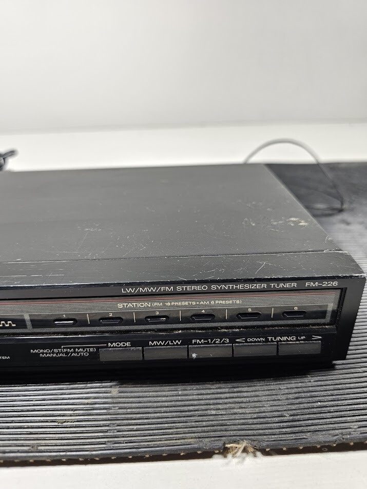 Fisher FM-226 Stereo Synthesizer Tuner - Used, Working The Fisher FM-226 LW/MW/FM Stereo Synthesizer Tuner is a classic component celebrated for its reliable performance and user-friendly interface. This tuner offers a range of station presets, including 18 FM and 6 AM, making it easy to access your favorite radio stations. Its digital synthesizer technology ensures precise tuning and high-quality audio reception, perfect for enhancing your home audio system. Despite visible signs of wear, such as scratches, the FM-226 remains in full working condition, delivering consistent audio performance. Ideal for vintage audio enthusiasts, this tuner adds a nostalgic touch to any entertainment setup, providing a cost-effective solution for enjoying radio broadcasts. All items will usually be shipped within 3 business days of receiving cleared payment (excludes weekends and holidays). If you have some questions, feel free to ask and if you are not satisfied with your purchase before opening a case on Ebay, please contact us and we will try to resolve your issues as quickly as possible. Multiple items on one of the listings? If you see that we have multiple quantities of the same item in a photo, please note that it is representative of what you will receive. There may be slight variations in condition between the pictured item and the one you receive. For example, the scratches and dents may differ. Return Notes: 1. For items listed as "working" condition: Returns due to "changed mind," "doesn't fit," or other buyer’s remorse reasons are accepted, but the buyer is responsible for return shipping costs. 2. For items received damaged or not as described: If the item arrives damaged or does not match the listing description, we will cover the return shipping costs. Supporting photos or video evidence must be provided before the return is approved. Please contact us immediately with the details and your order number to resolve the issue efficiently. 3. For items listed as "For parts or not working": Returns are not accepted, as these items are explicitly described as non-functional or for repair purposes only. Buyers acknowledge this condition at the time of purchase. 4. General return guidelines: Items must be returned in the same condition as received, including all original packaging and accessories (if applicable). Returns must be initiated through the eBay Returns Center and include a valid return reason. For corporate or small business customers: If you require an invoice for your purchase, please specify this in the buyer's notes section or reach out to us.